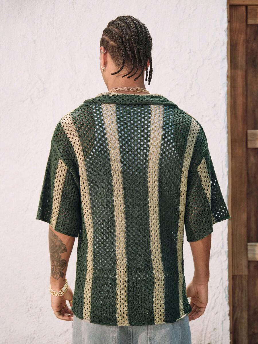 Street Life Men's Vacation Floral Hollow-Out Single Breasted Casual Knit Top