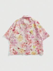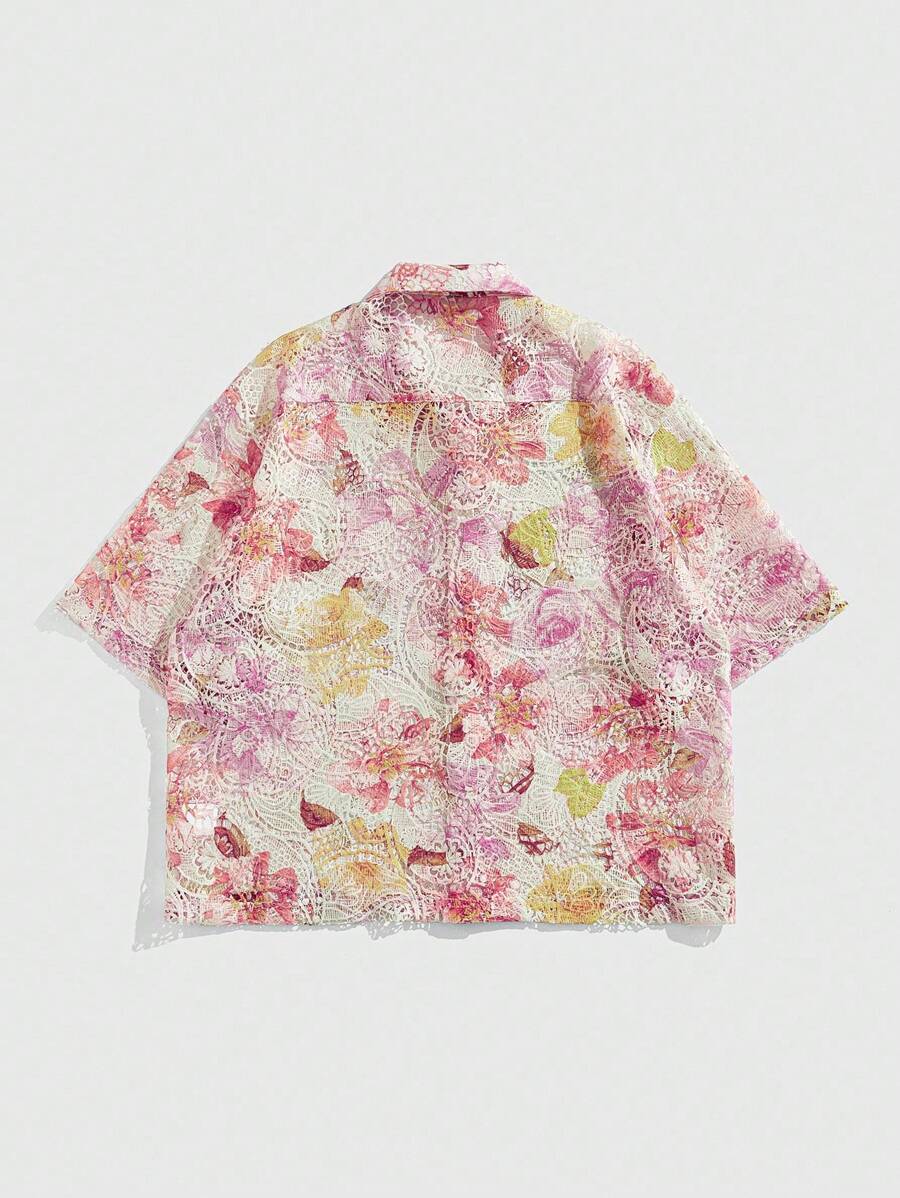 Street Life Men's Vacation Gradient Color Water-Soluble Lace Semi-Sheer Vacation Shirt, Summer