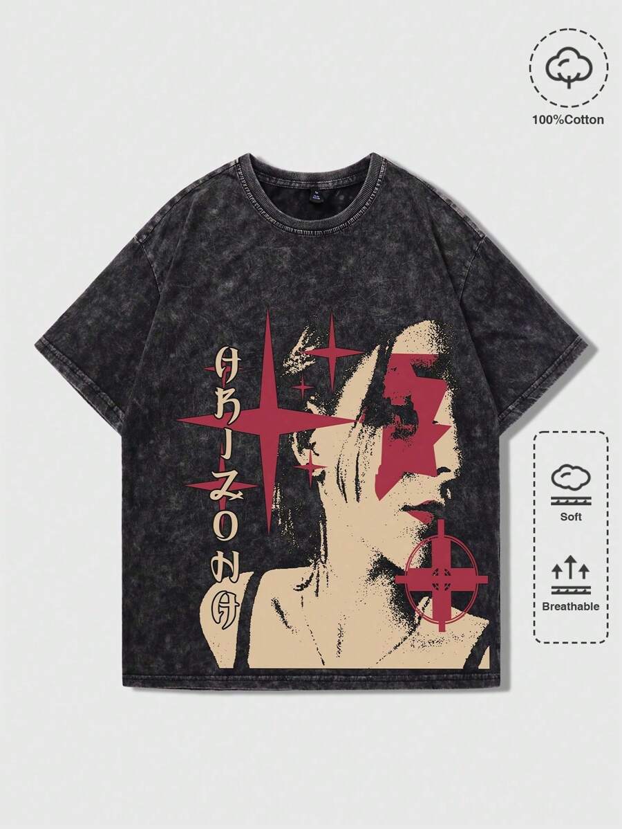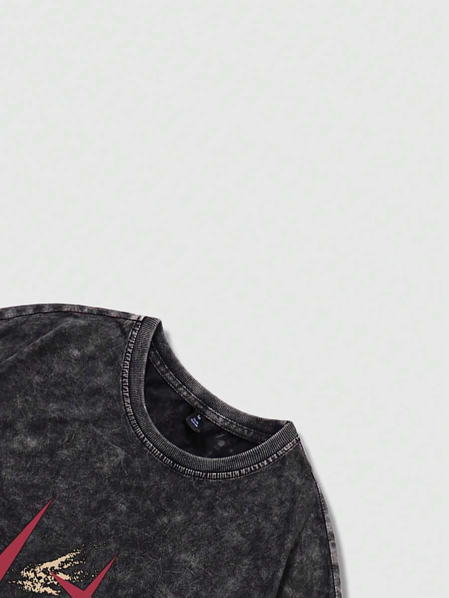 Street Life Men's Vintage Flame Skull Print Washed Crinkle T-Shirt, Summer, School