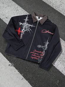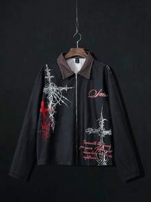 Street Life Men's Vintage Gothic Cross & Angel Print Overcoat, Suitable For Autumn/Winter