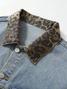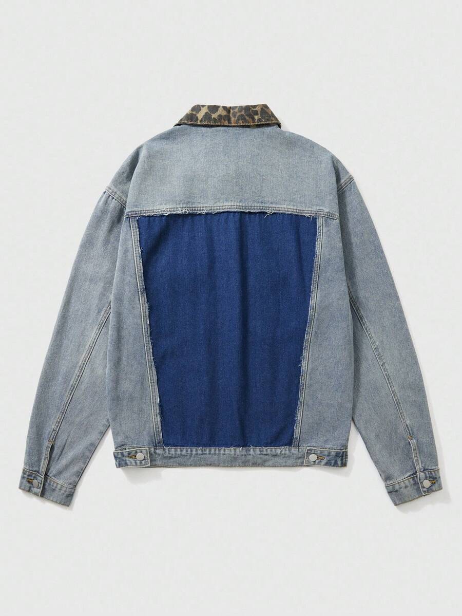 Street Life Men's Vintage Leopard Print Patchwork Denim Jacket, Fall