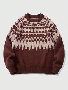 Street Life Men's Vintage Style Crew Neck Long Sleeve Knit Sweater , Fall Winter