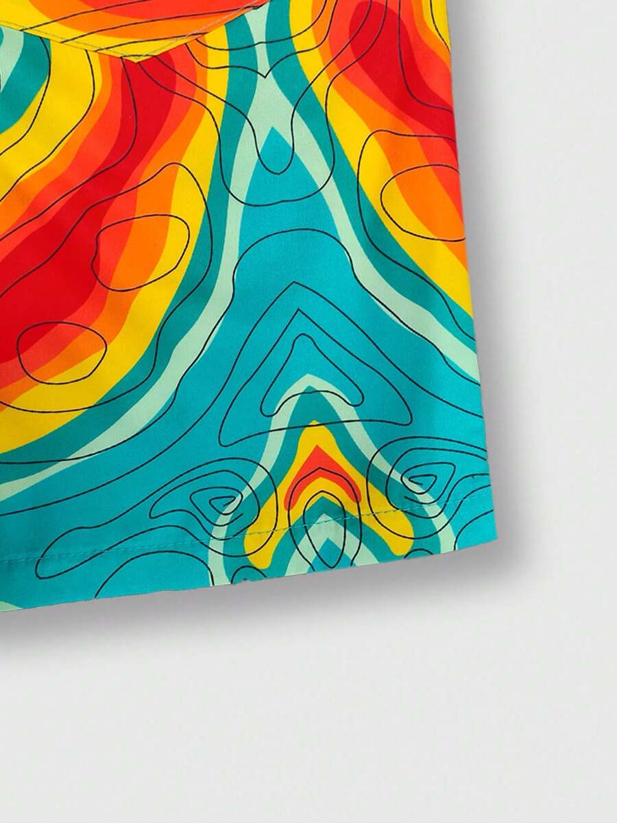 Street Life Men's Wavy Striped Drawstring Waist Pockets Casual Shorts