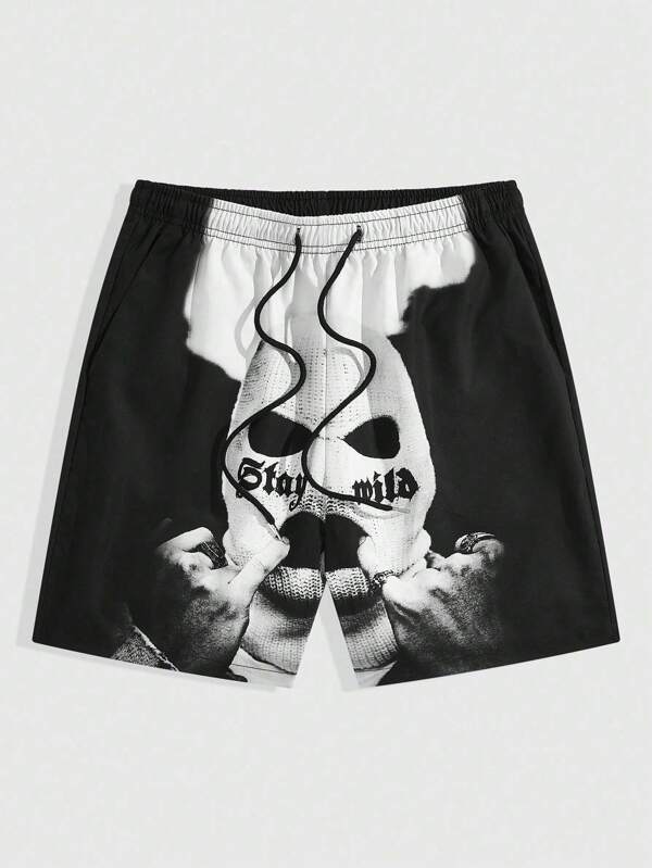 Street Life Plus Size Women Gothic Style Letter & Figure Print Pockets Shorts