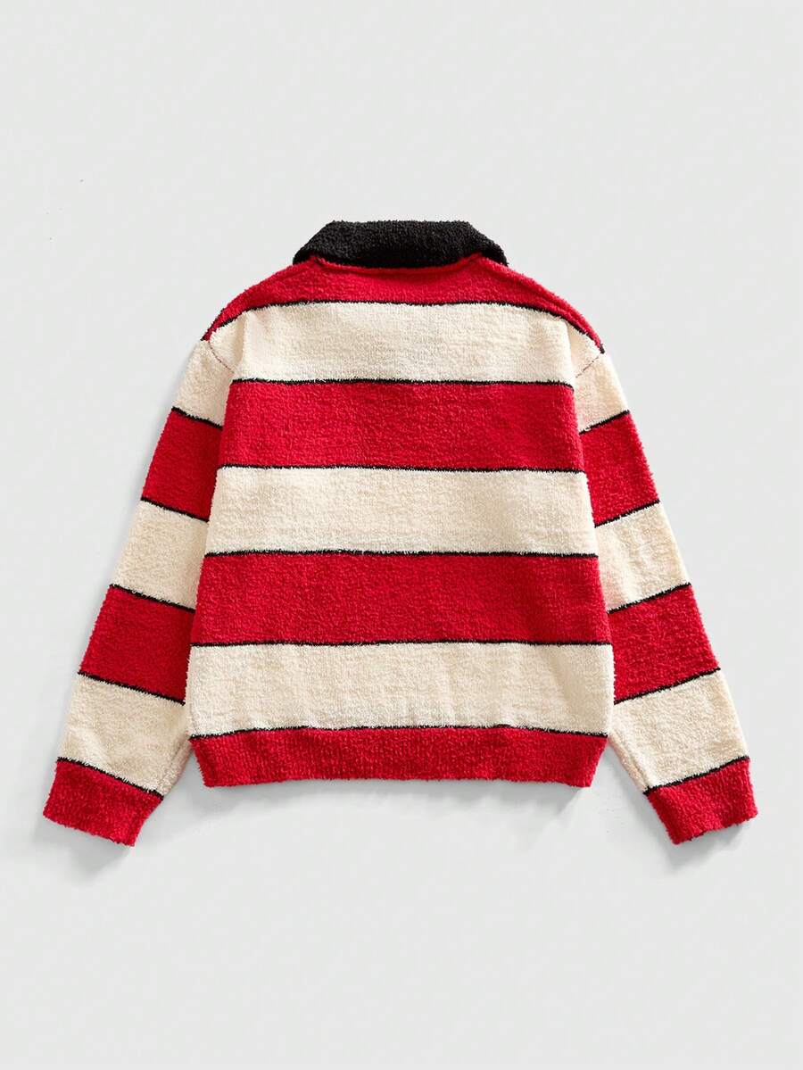 Street Life Spring Casual Graphic Men'S Striped Half-Zip Contrast Color Block Collar Long Sleeve Sweater
