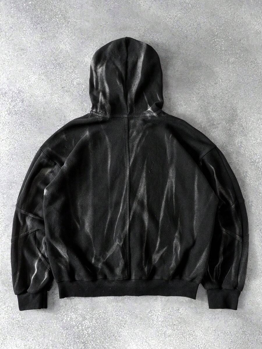 Street Life Spring Casual Men'S Distressed Washed Open Front Sweatshirt, Vintage Street Style