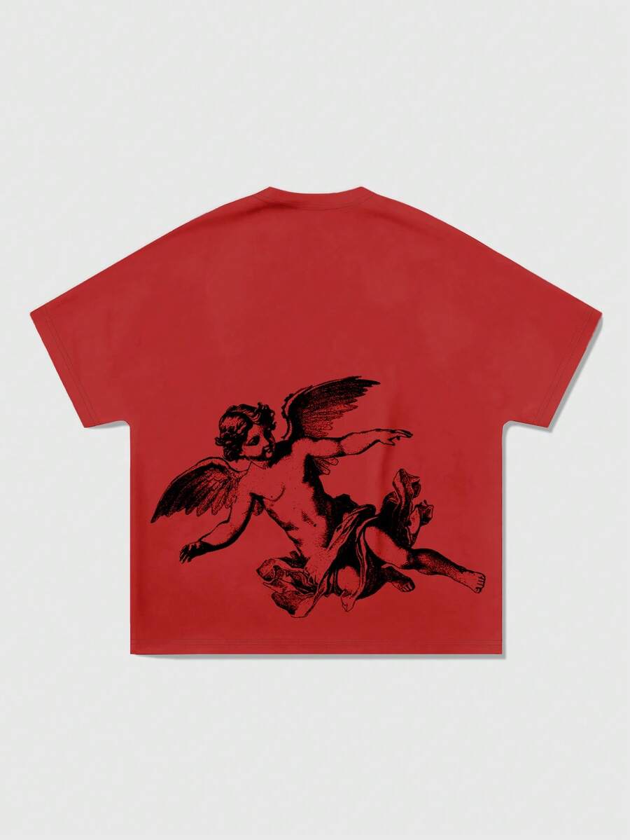Street Life Spring/Summer Casual Graphic Red Men'S Batwing Sleeve Print Short Sleeve T-Shirt, Suitable For Everyday Wear In Spring/Summer
