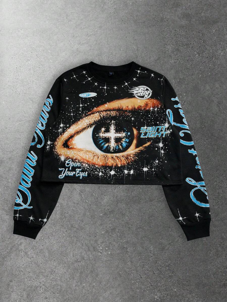 Street Life Unisex Casual Drawstring Long Sleeve Top, Street Style Graphic Print Crew Neck T-Shirt
