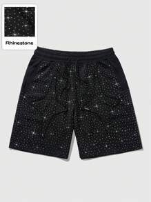 Street Life Unisex Casual Shorts With American Street Style Star Rhinestone Applique & Spray Paint Horse Print