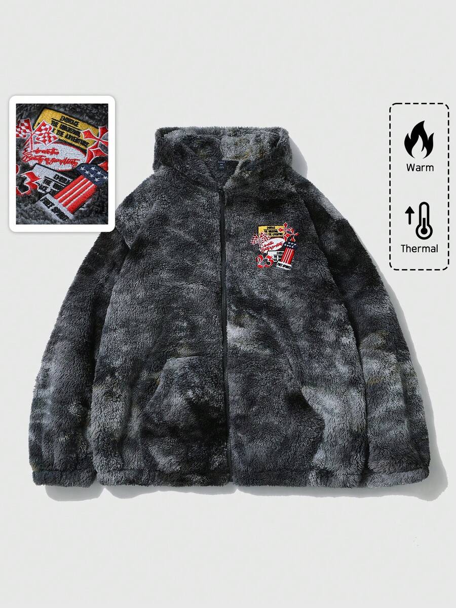 Street Life Unisex Hooded Jacket With Tie-Dye Effect & Embroidered Badge, Thermal Lined For Autumn/Winter