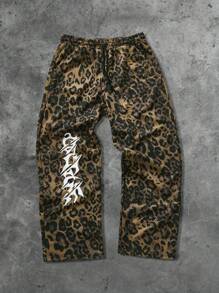 Street Life Unisex Leopard & English Graphic Printed Sweatpants, Street American Style