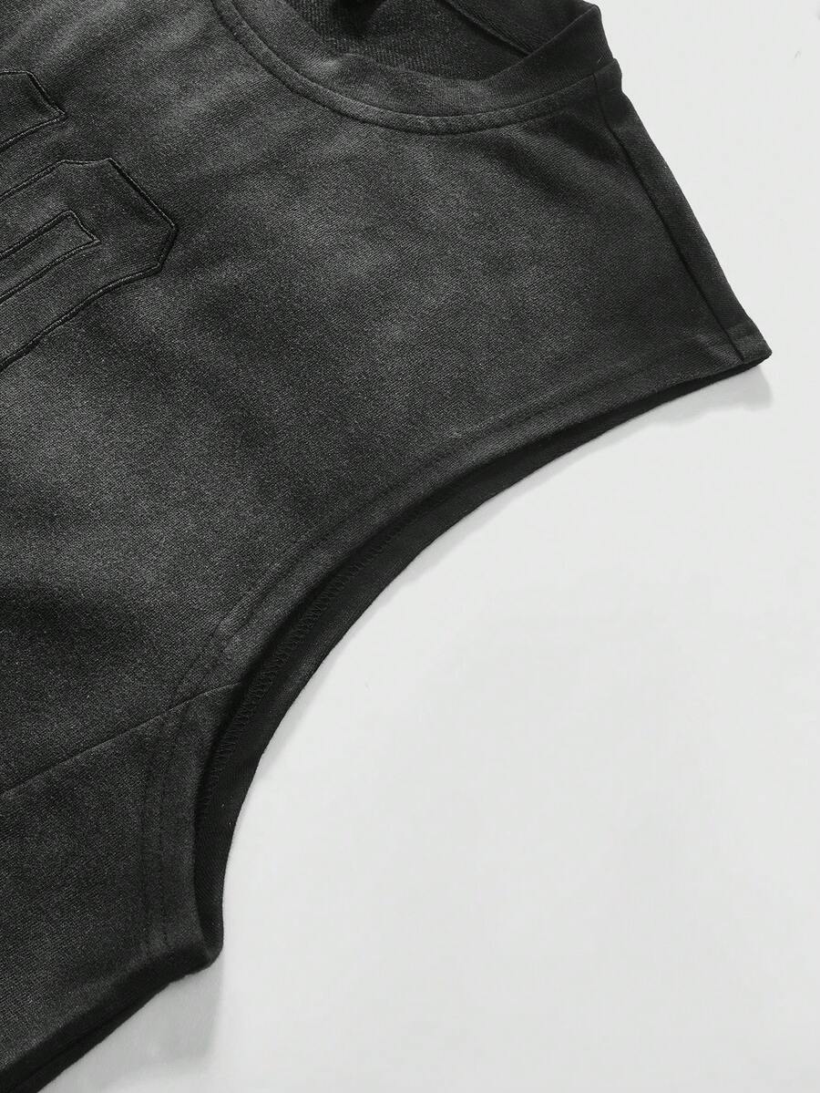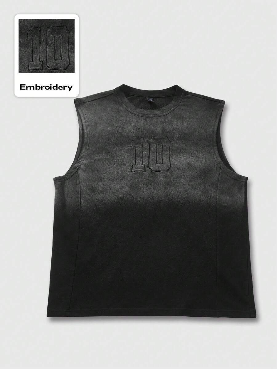 Street Life Unisex Street American Patchwork Numeric Embroidery Gradient Dip-Dyed Tank Top