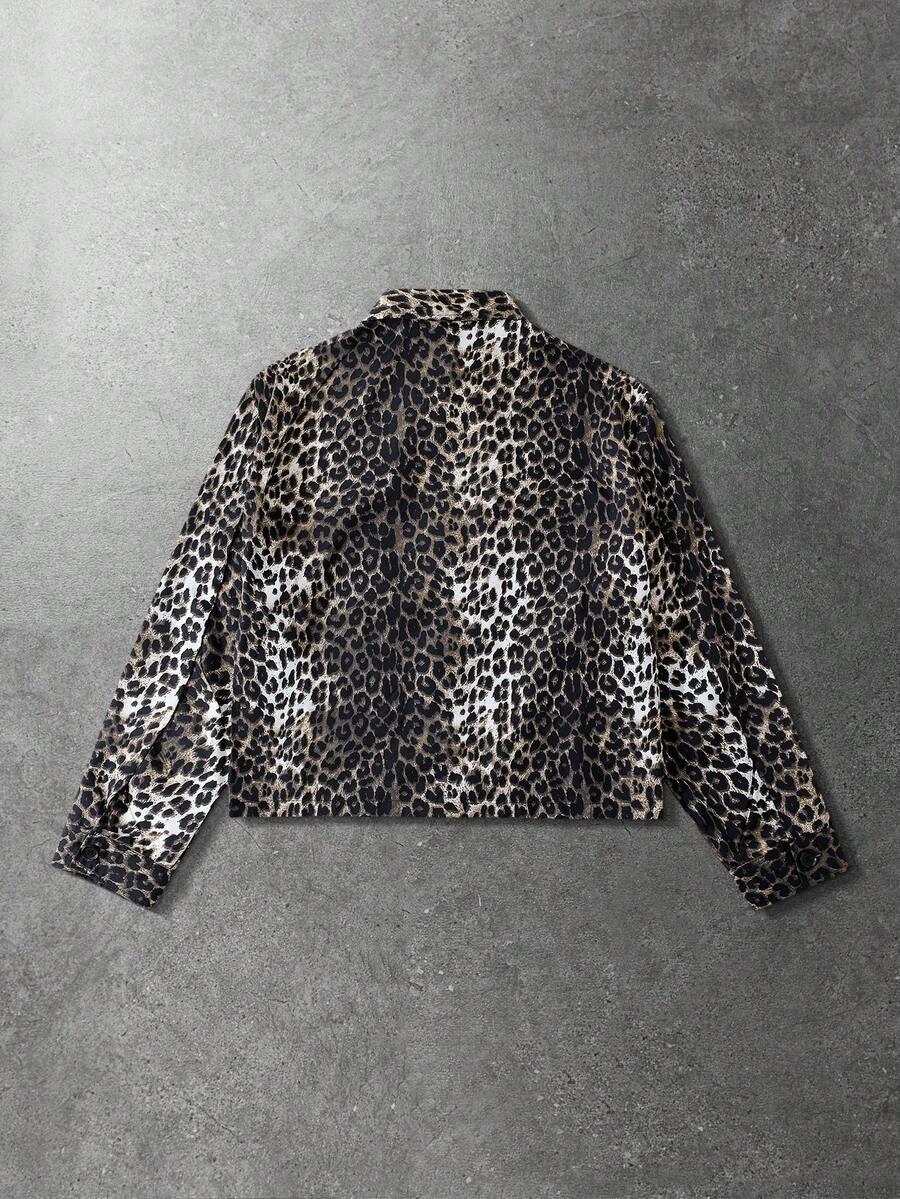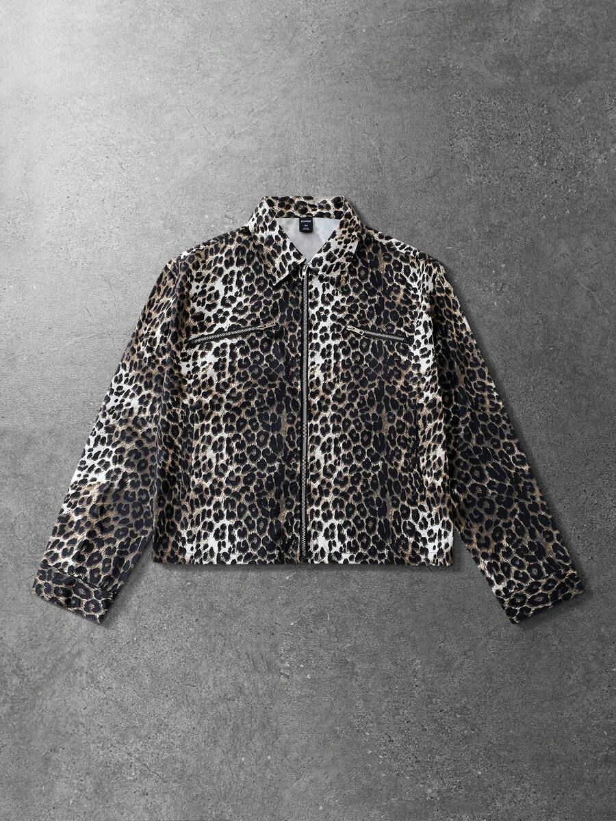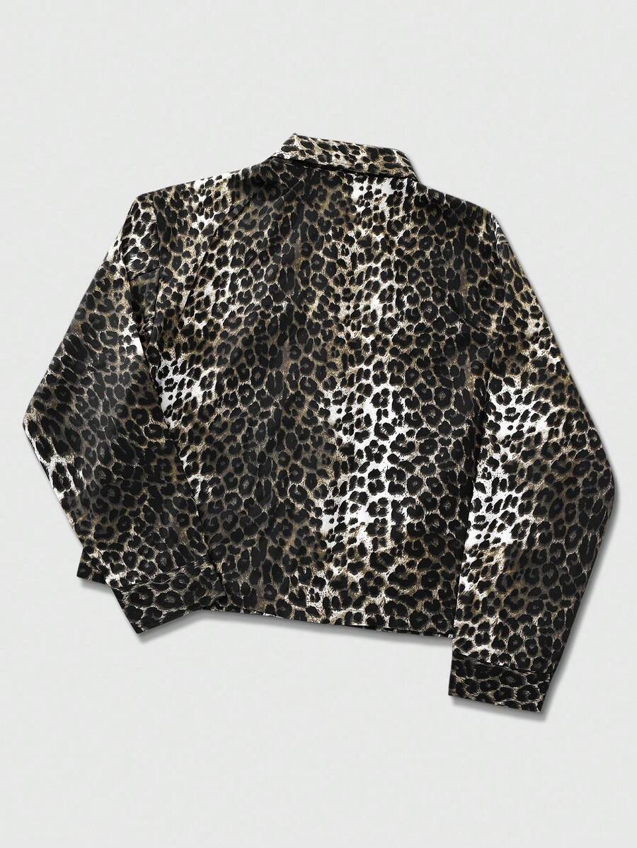 Street Life Unisex Street Style Leopard Print Textured Jacket, Grunge, Fall