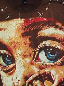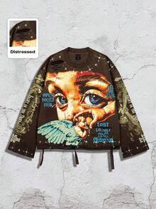Street Life Vintage Street Style Distressed Saint Graphic Long Sleeve Crew Neck Men's T-Shirt, For Fall