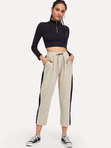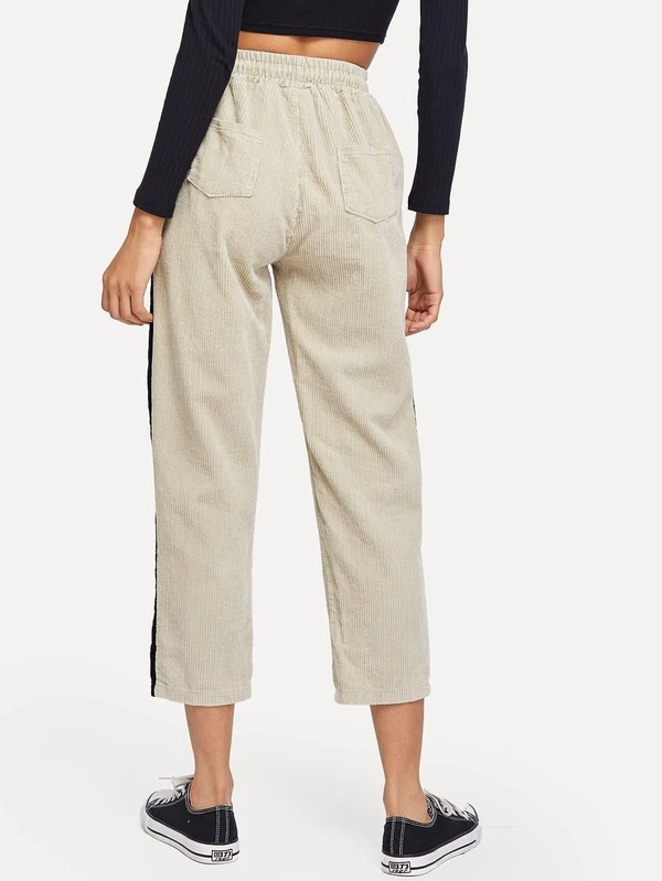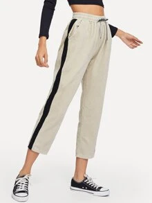 Stripe Contrast Side Drawstring Corduroy Pants