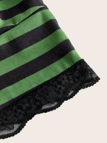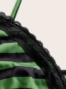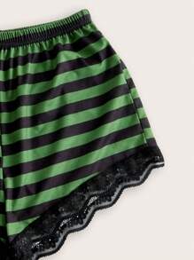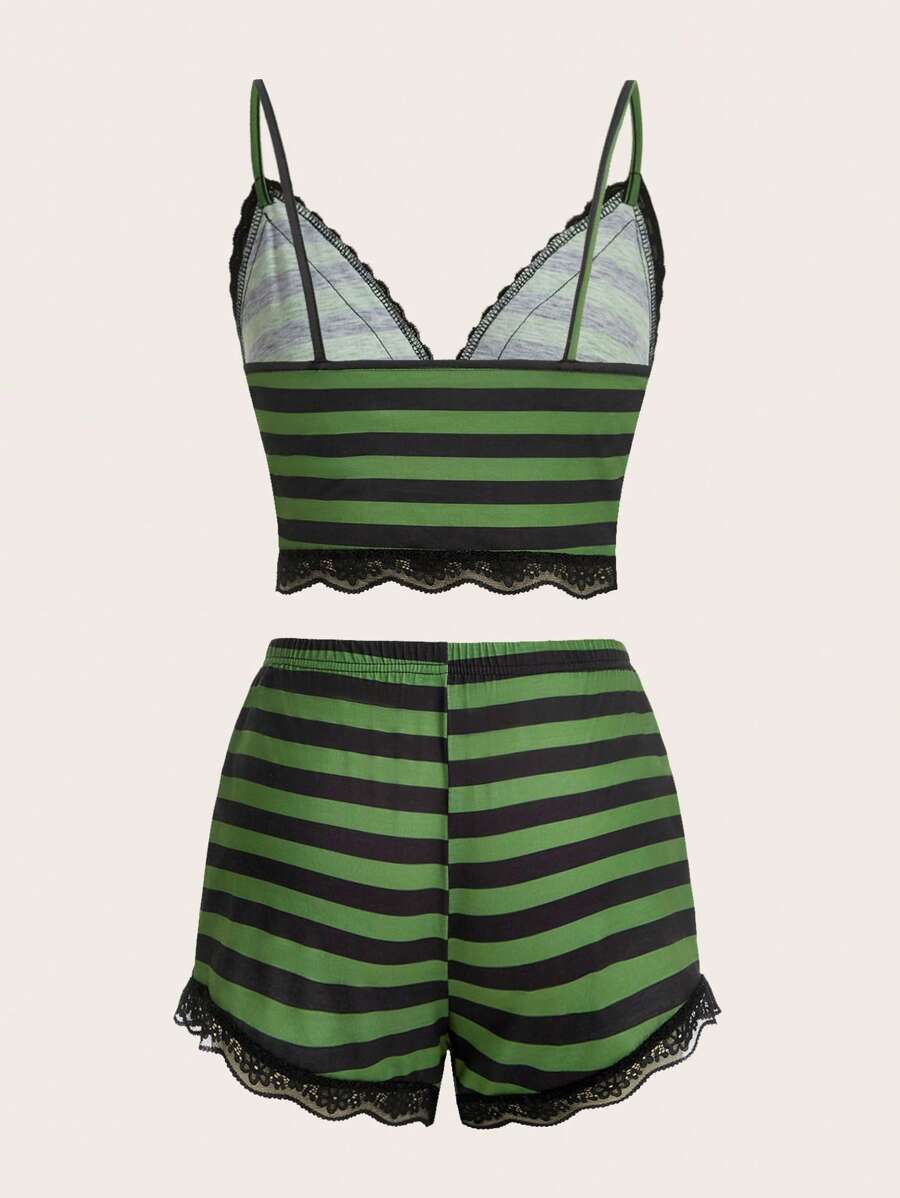 Striped Contrast Lace Cami Top & Shorts
