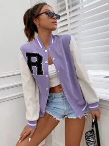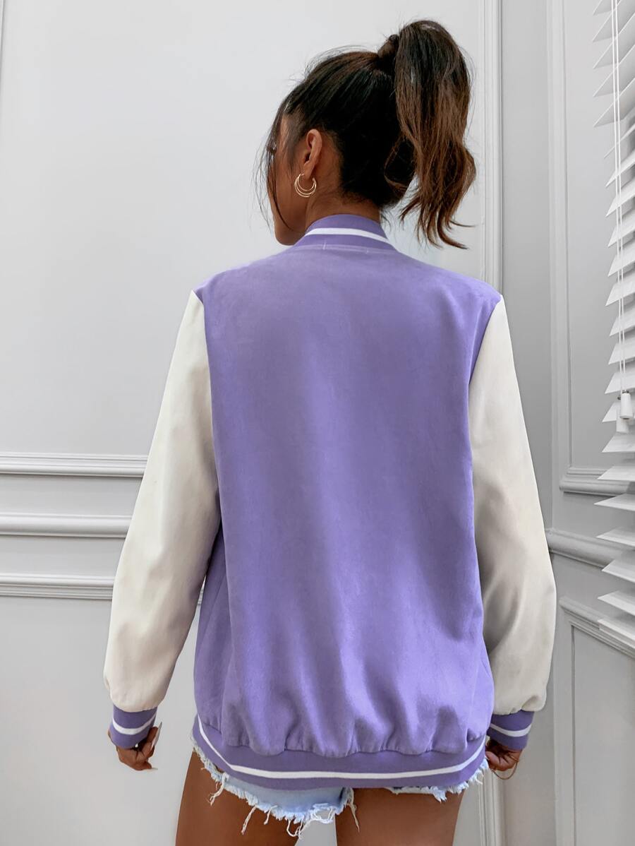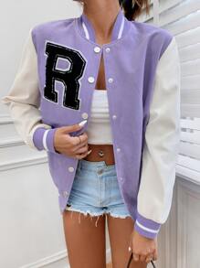Striped Letter Patched Varsity Jacket