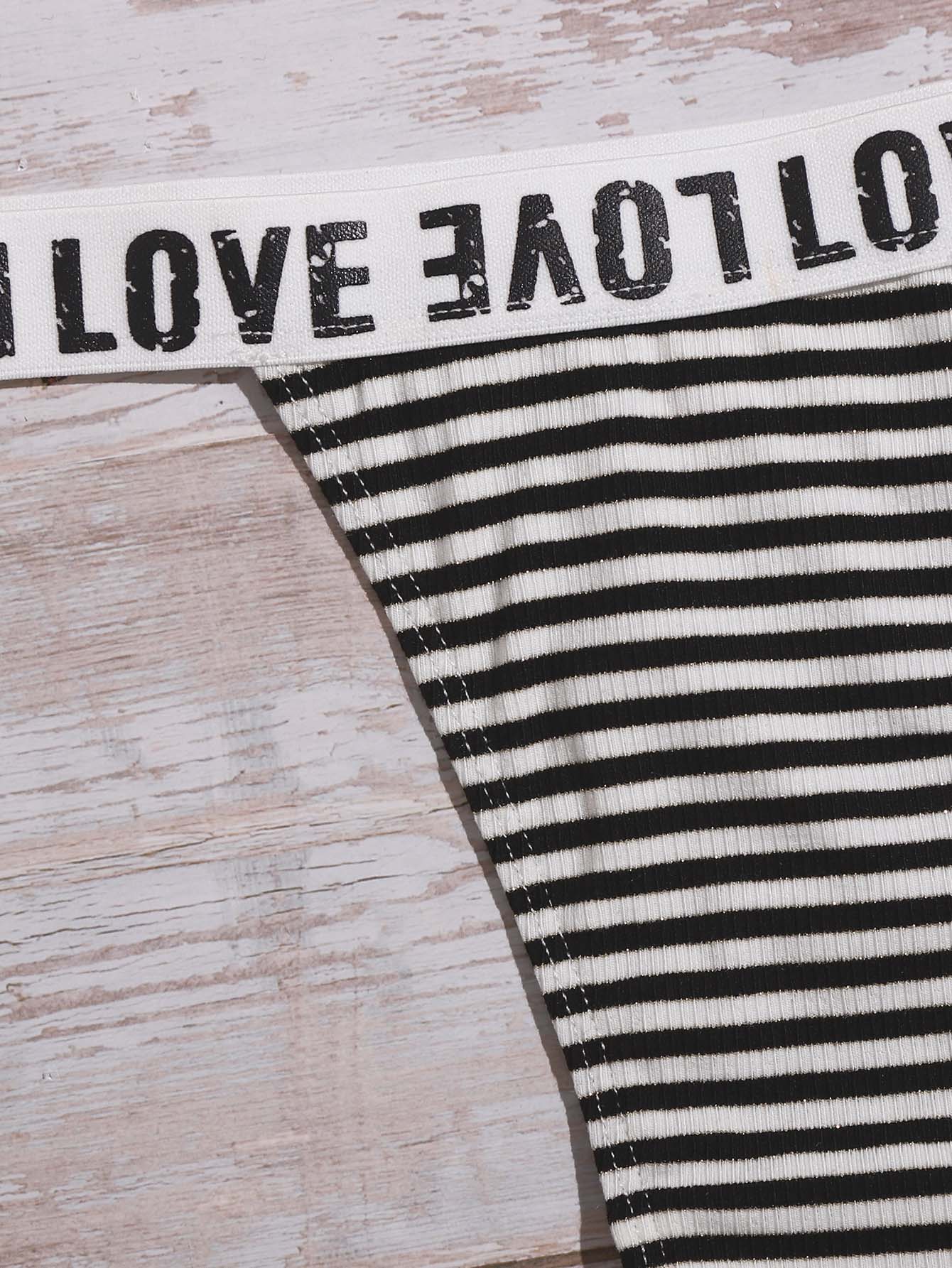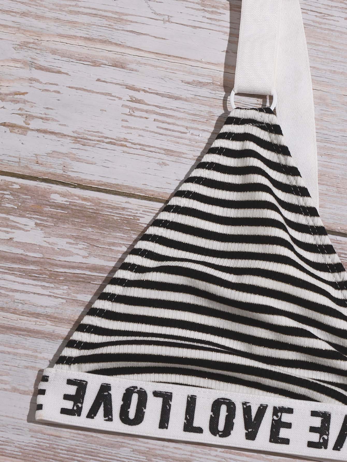 Striped Letter Tape Lingerie Set