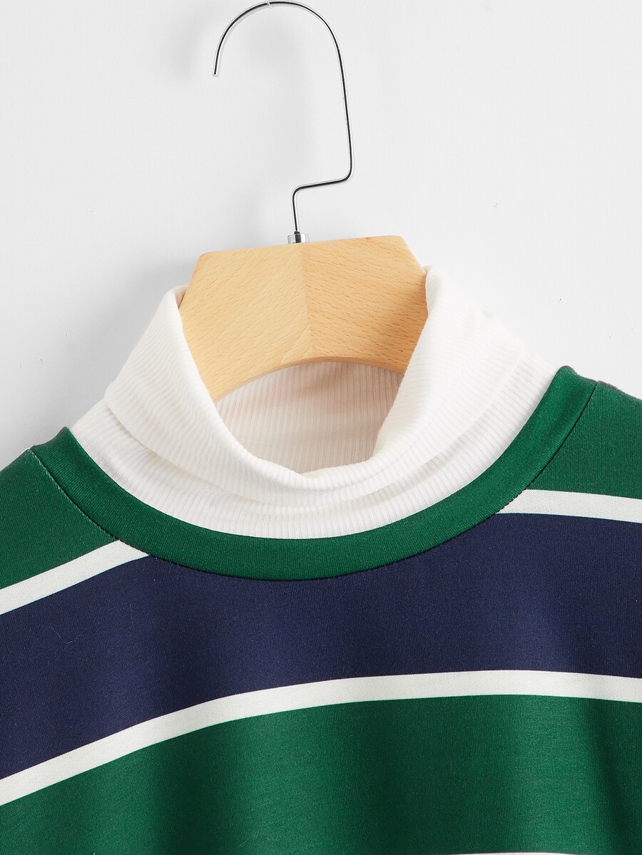 Striped Mock Neck Drop Shoulder Tee
