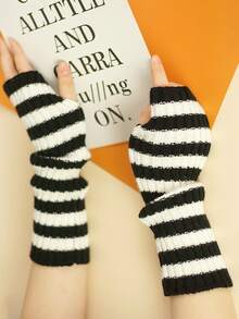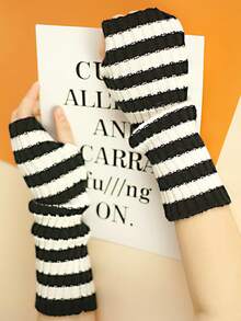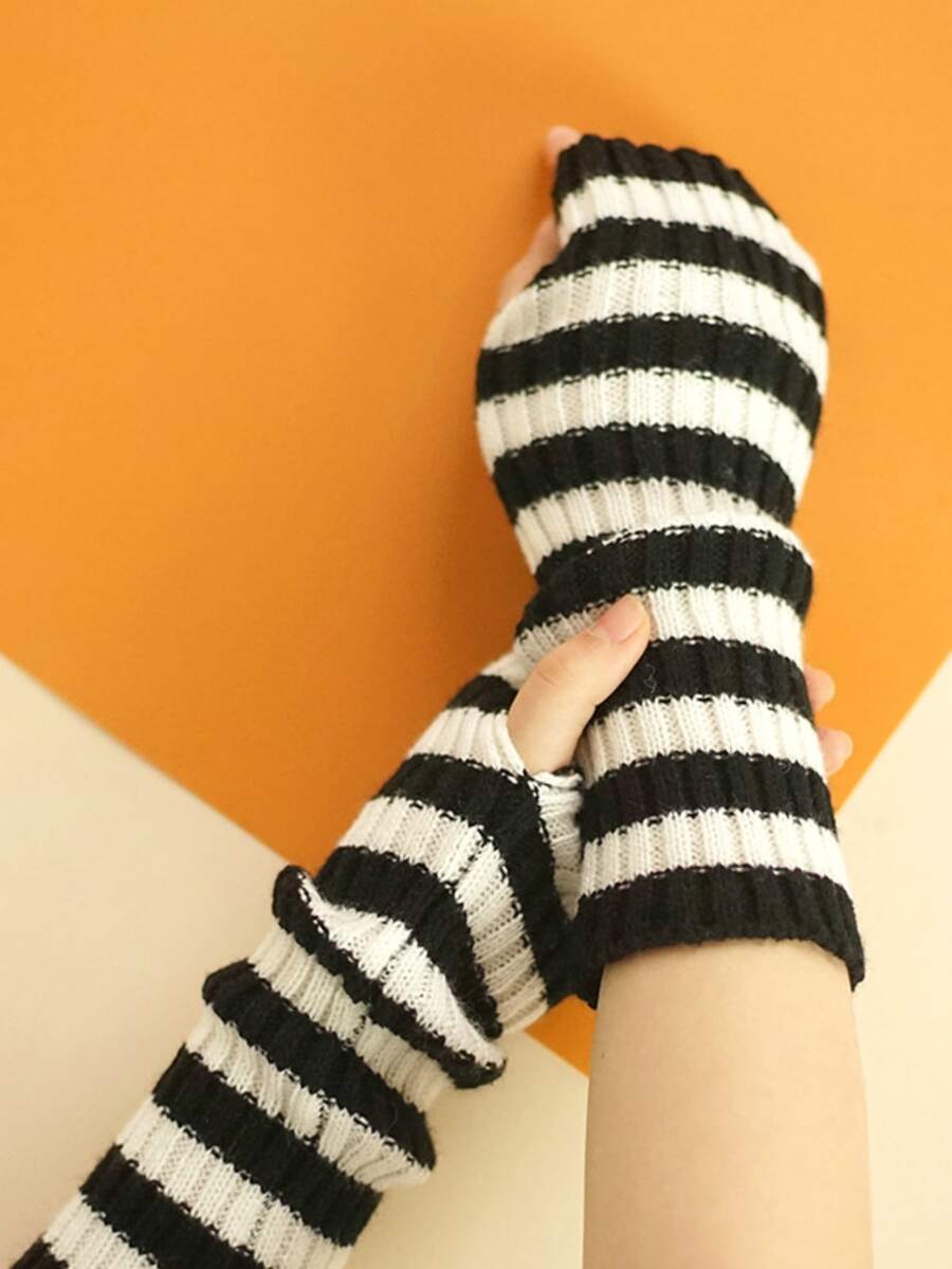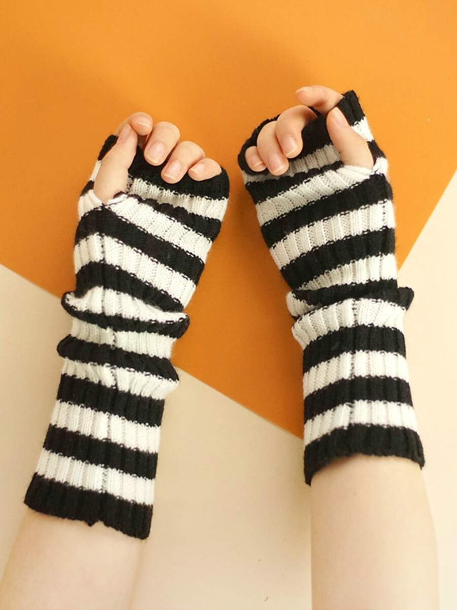 Striped Pattern Fingerless Gloves