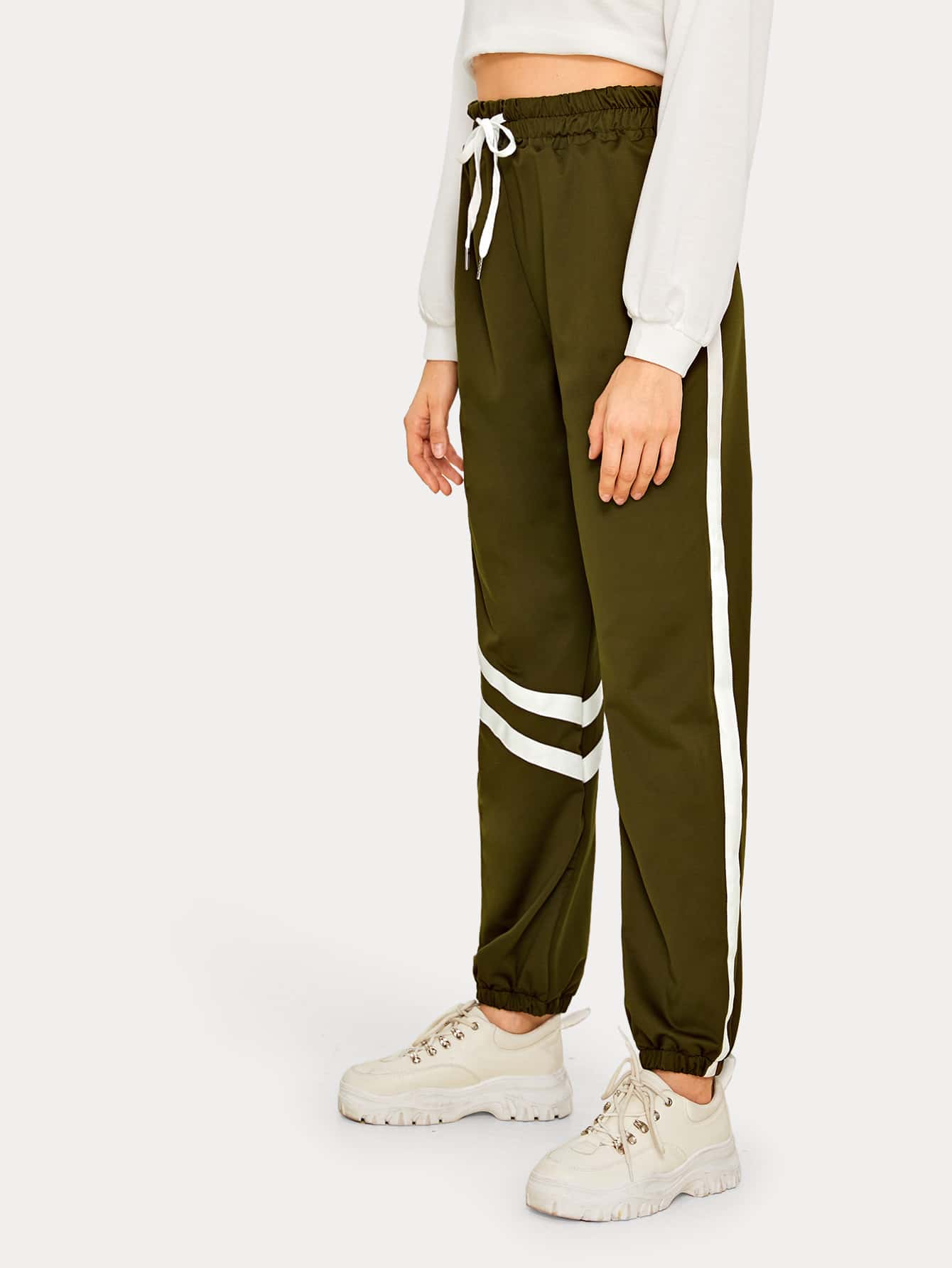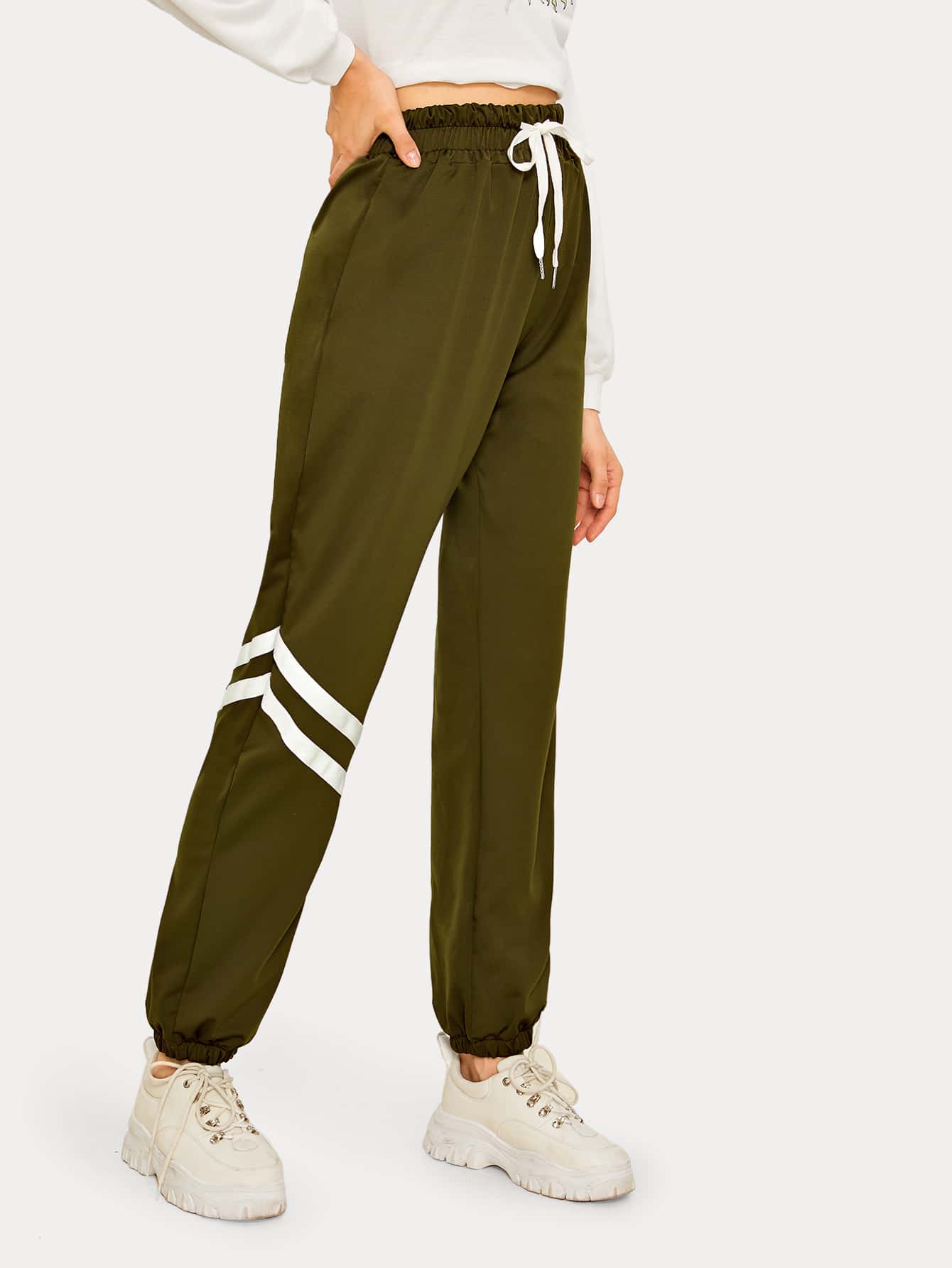 Striped Tape Panel Drawstring Waist Sweatpants
