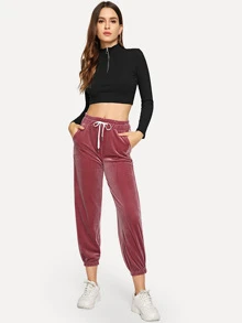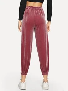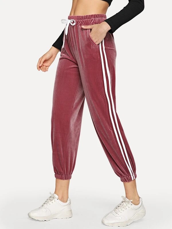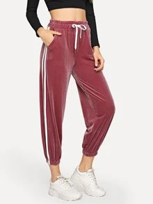 Striped Tape Side Drawstring Velvet Pants