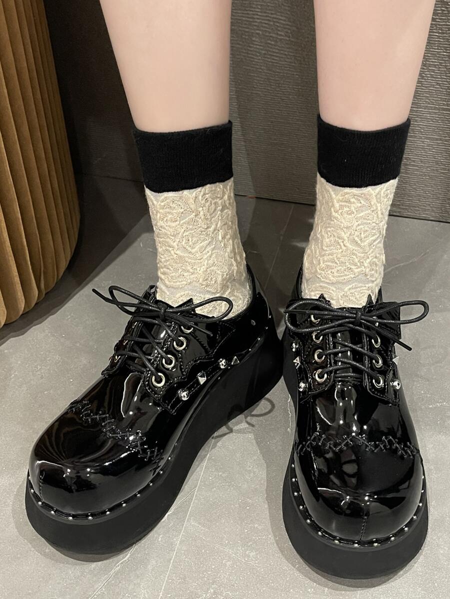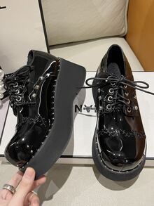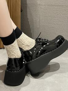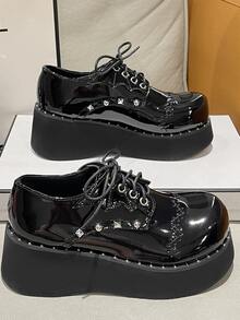 Studded Decor Lace-up Front Flatform Oxford Shoes