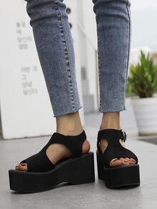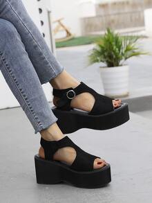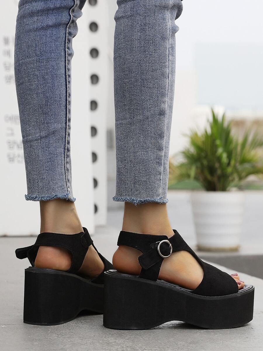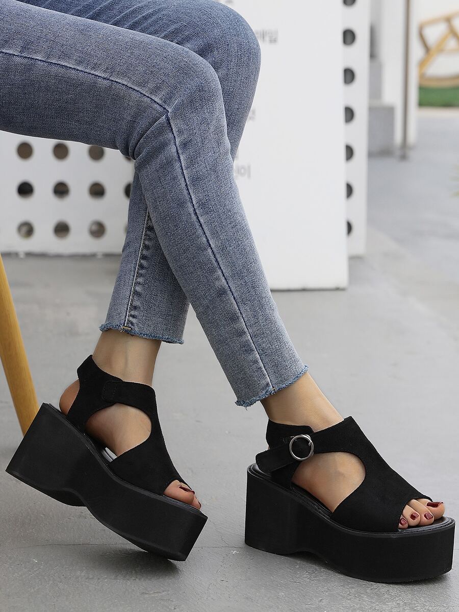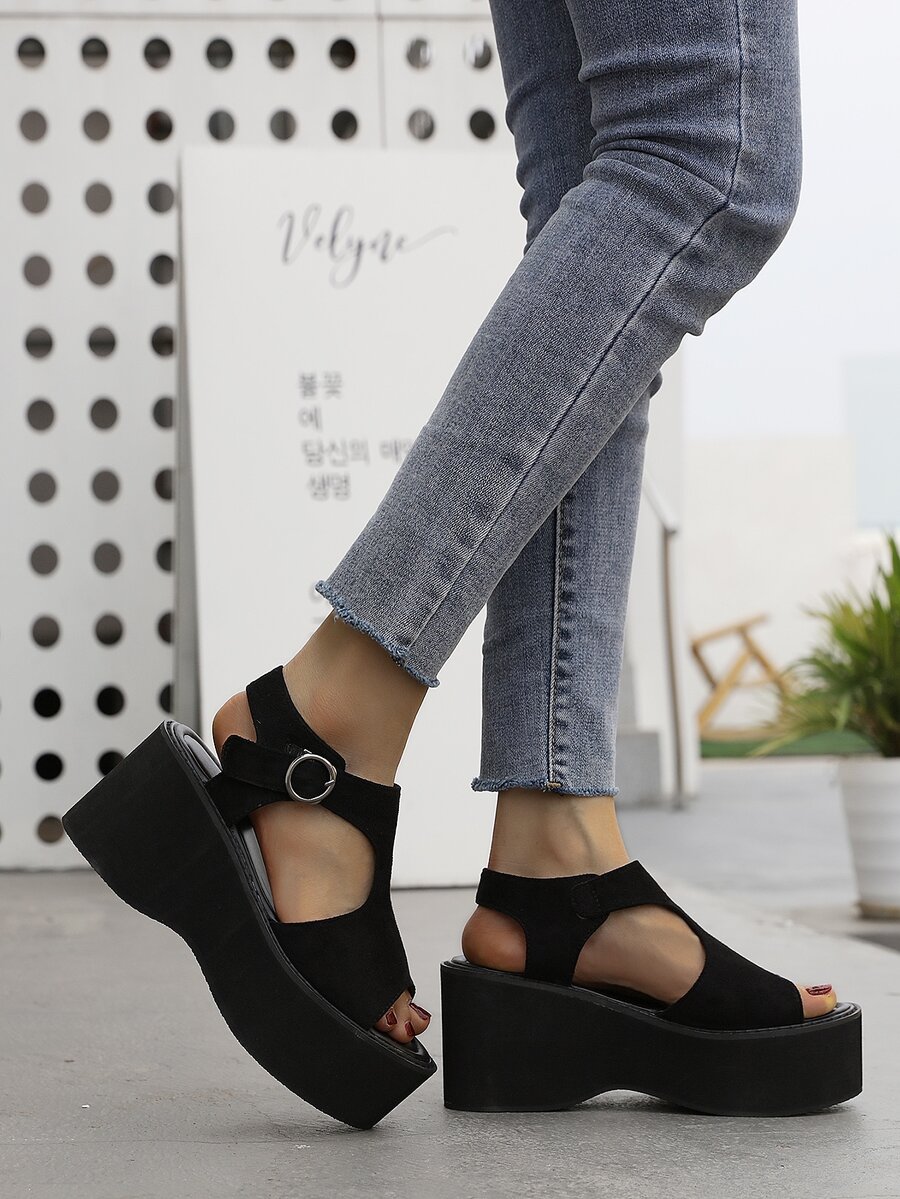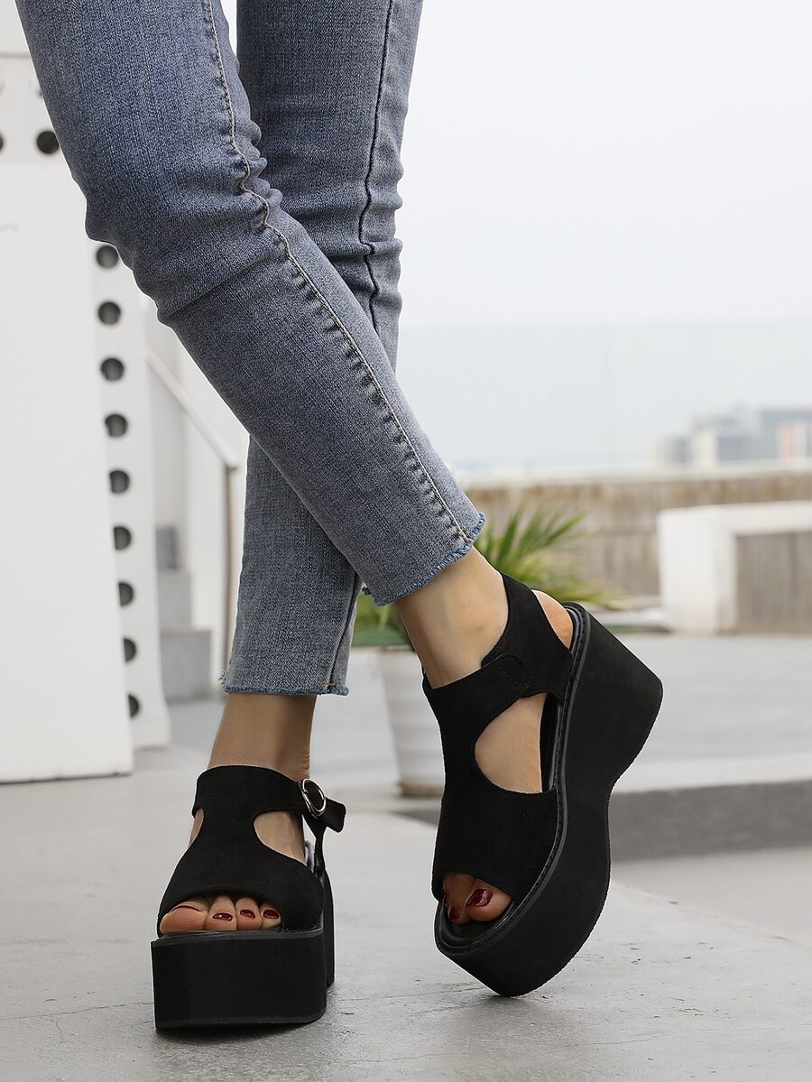 Suedette Cut Out Wedge Sandals