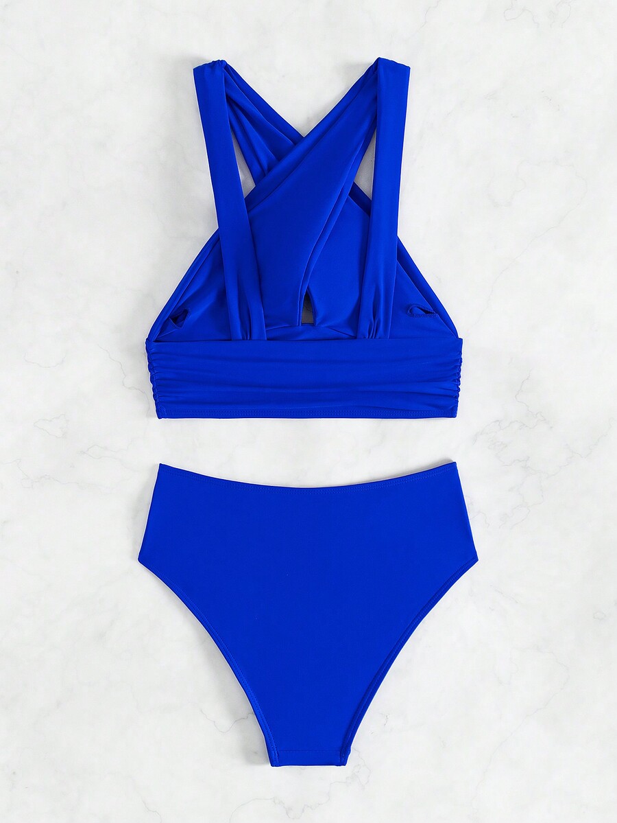 Summer Beach Criss Cross Ruched High Waisted Bikini