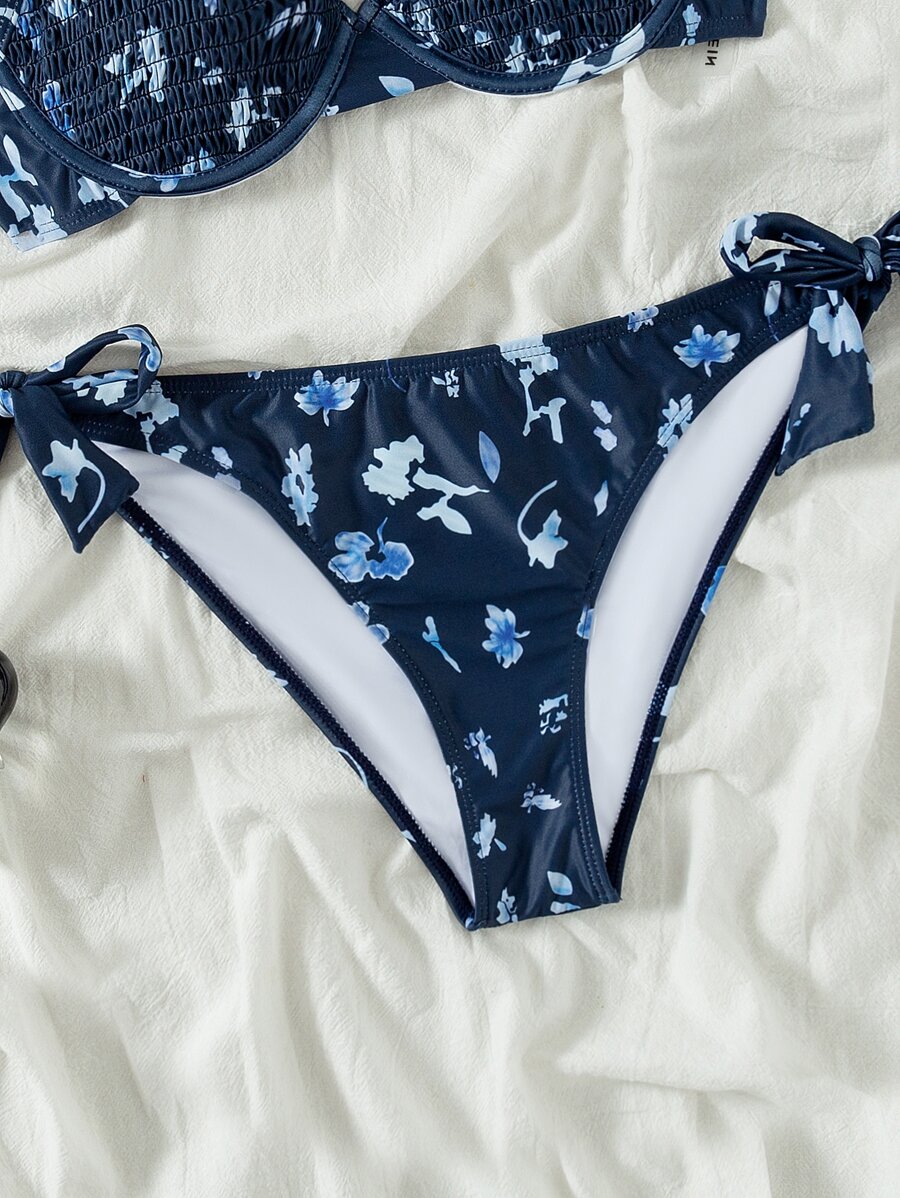 Summer Beach Ditsy Floral Bikini Set Smocked Underwire Bra Top & Tie Side Bikini Bottom 2 Piece Bathing Suit
