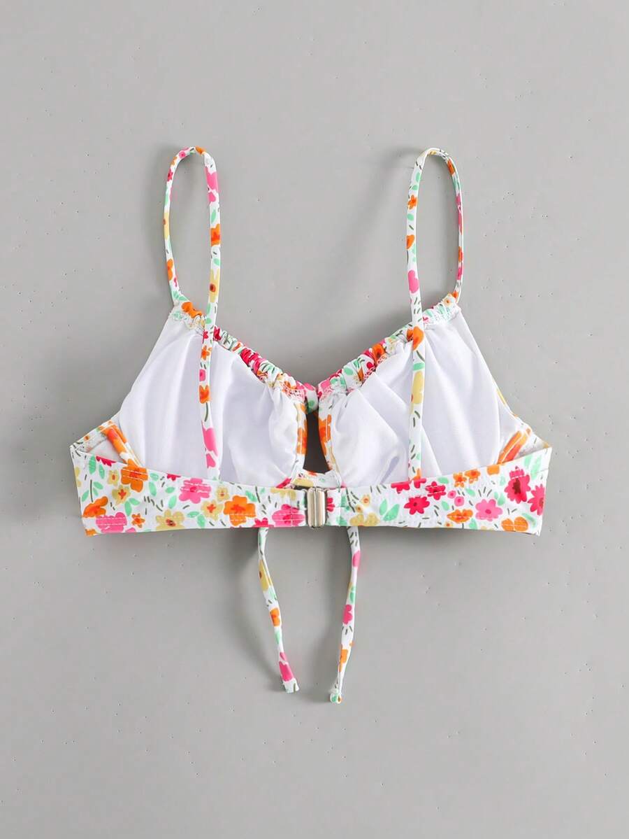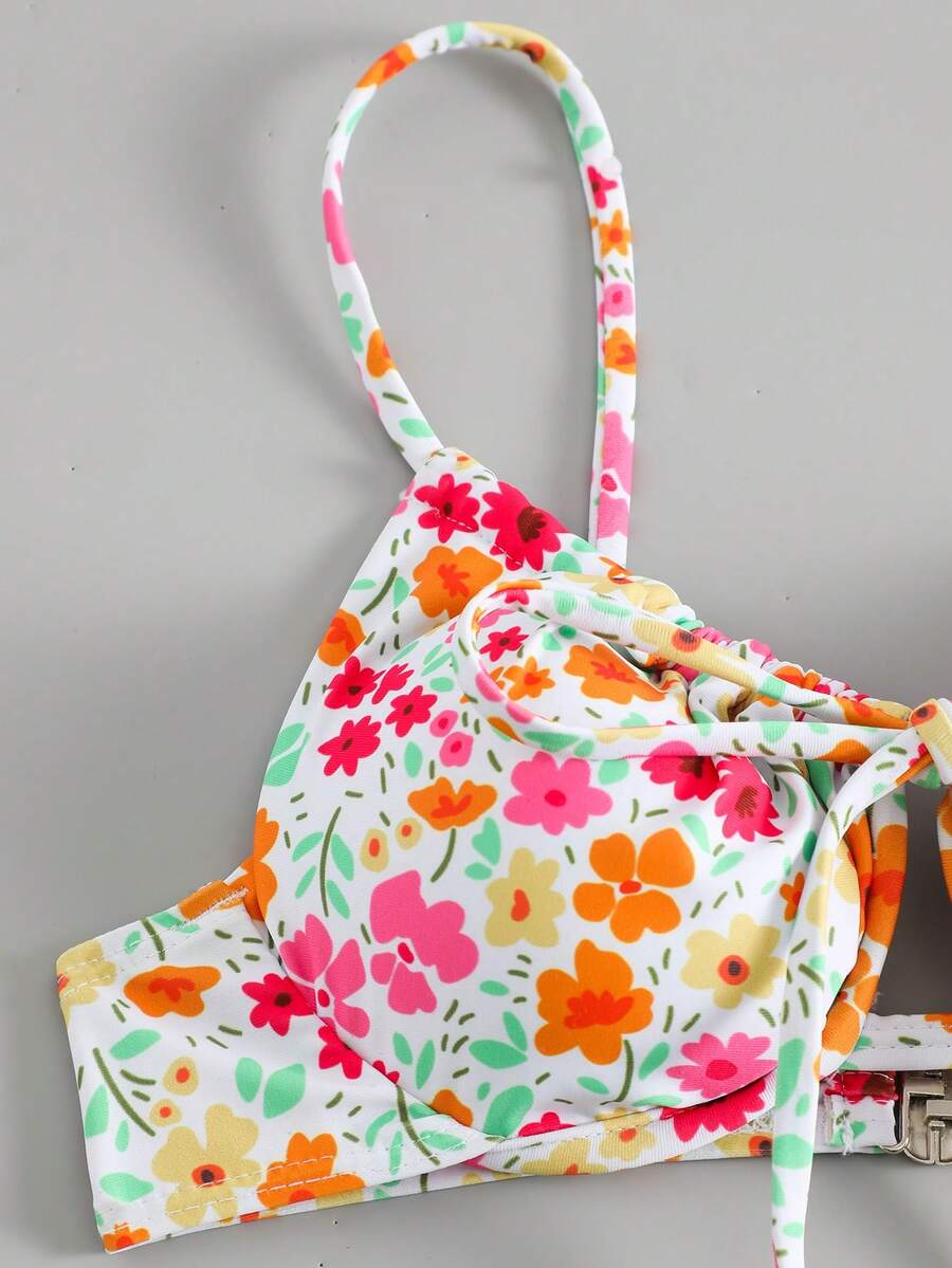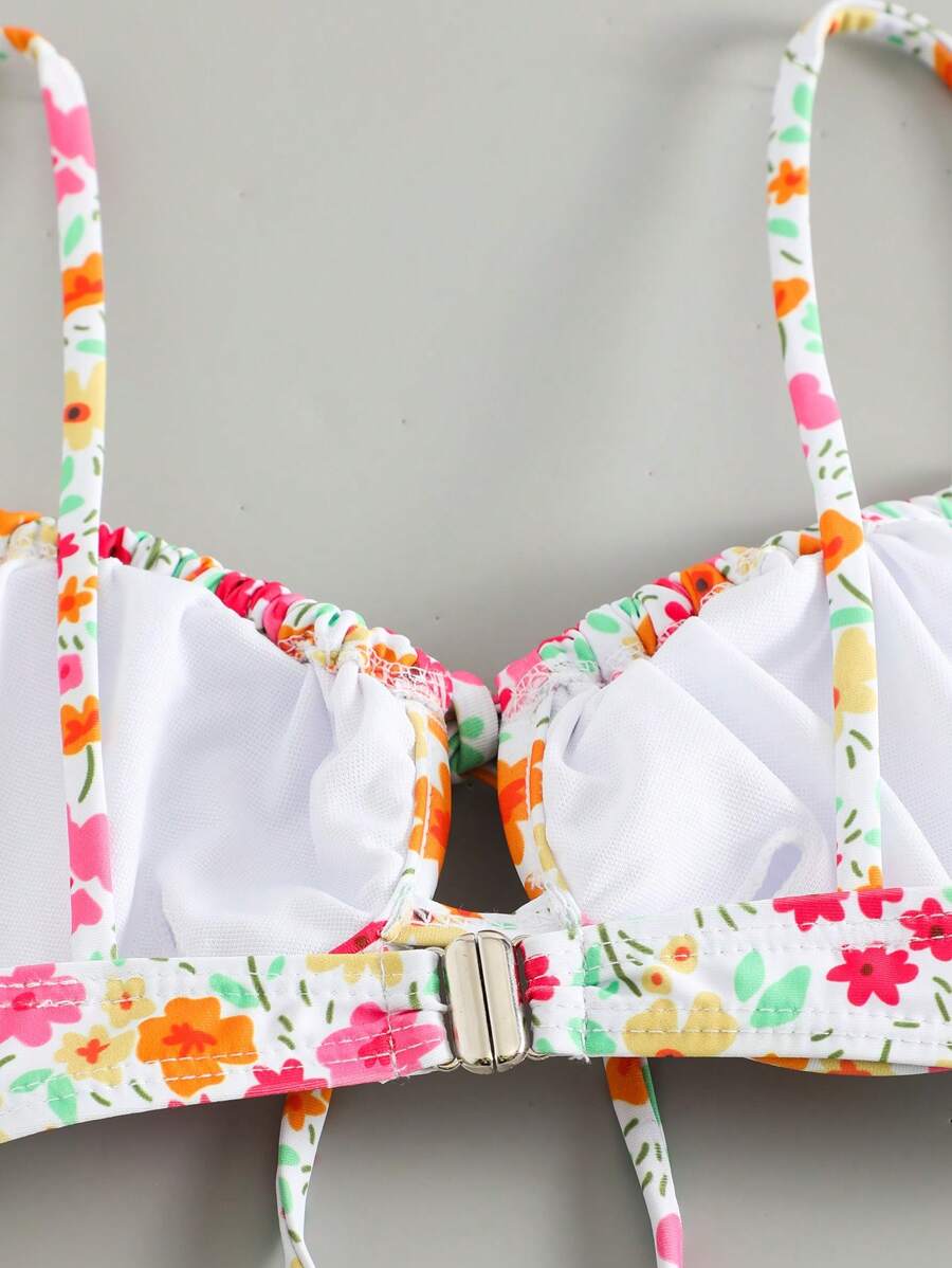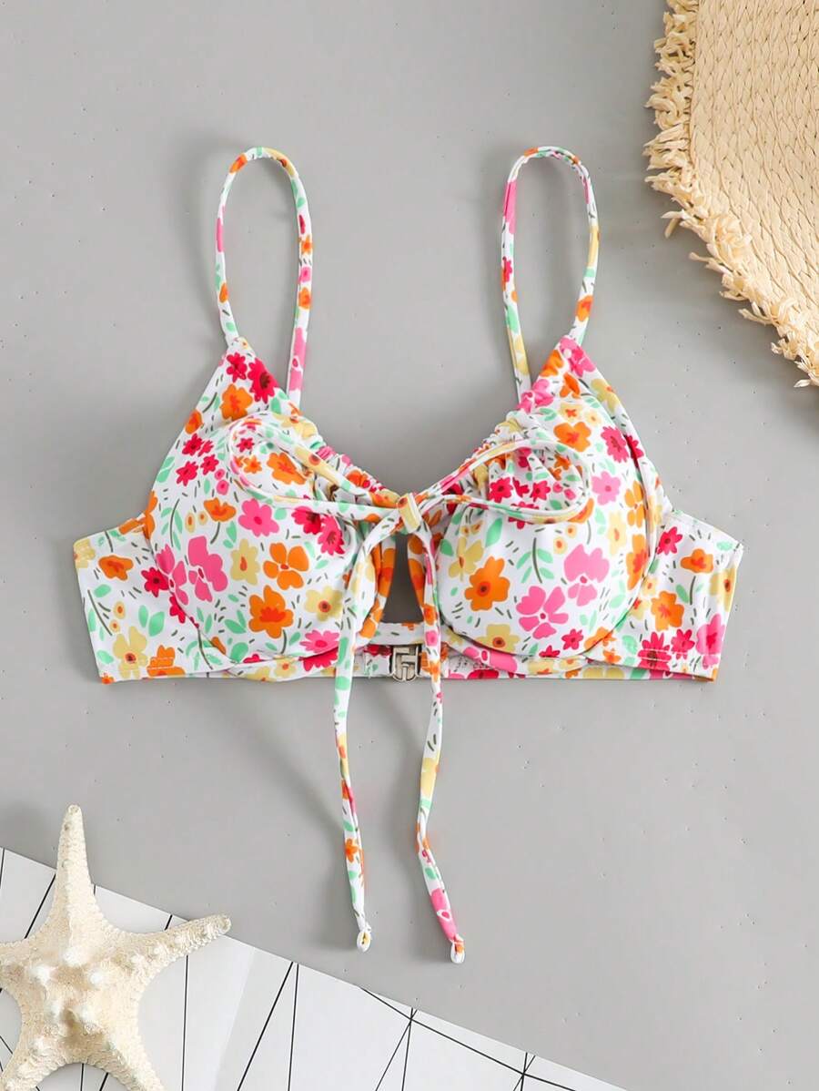 Summer Beach Floral Print Tie Front Underwire Bikini Top