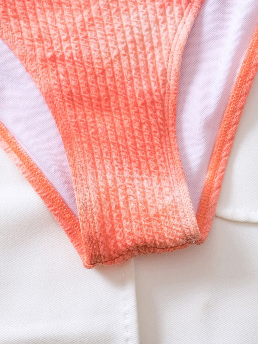 Summer Beach Tie Dye Ribbed Bikini Set, Halter Triangle Bra & Bikini Bottom 2 Pieces Bikini, Bathing Suit