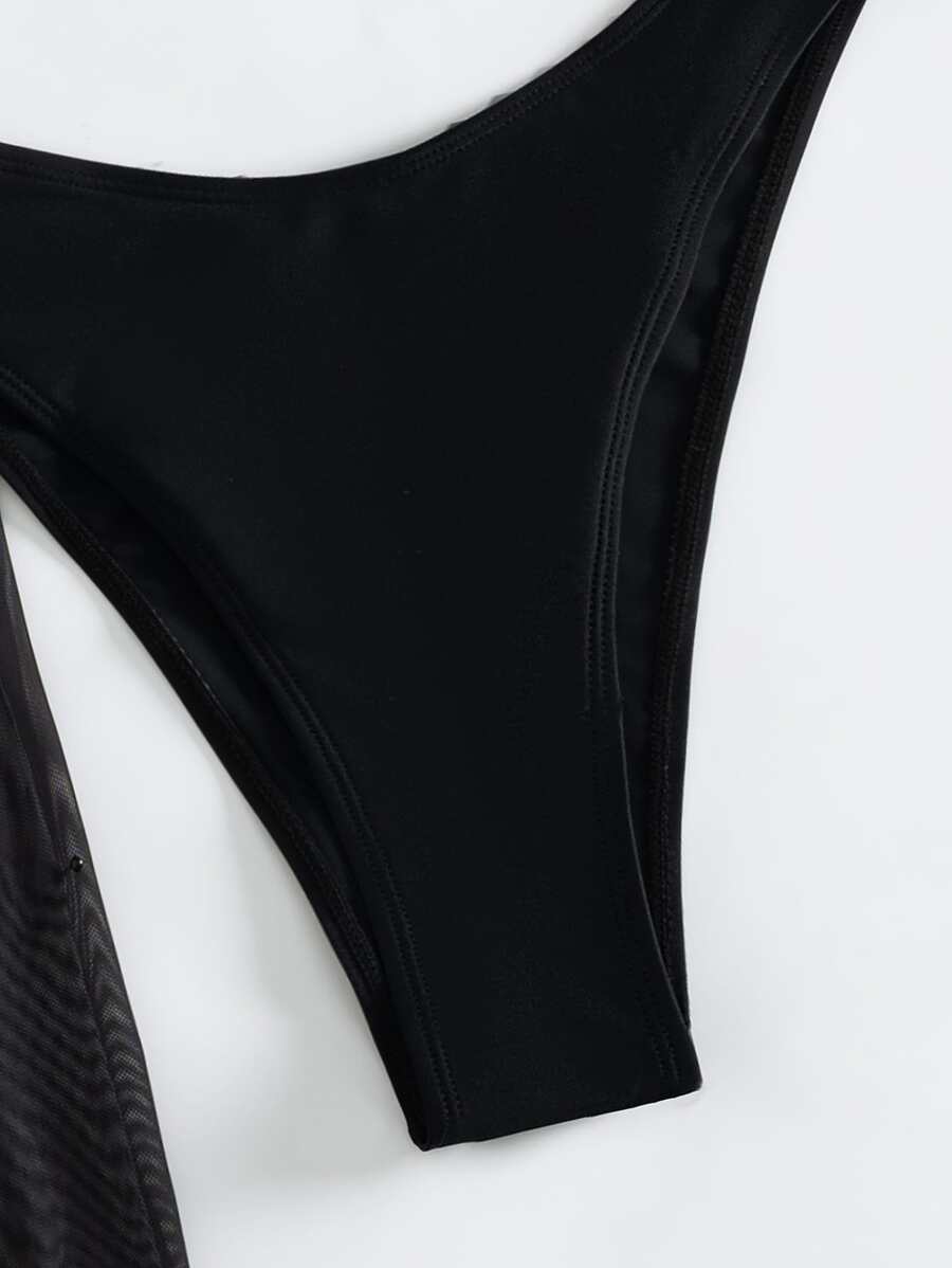 Summer Beach Triangle Bikini Set With Letter Graphic Mesh Cover Up