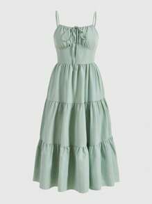 Summer Casual Solid Color Pleated Spaghetti Strap Dress
