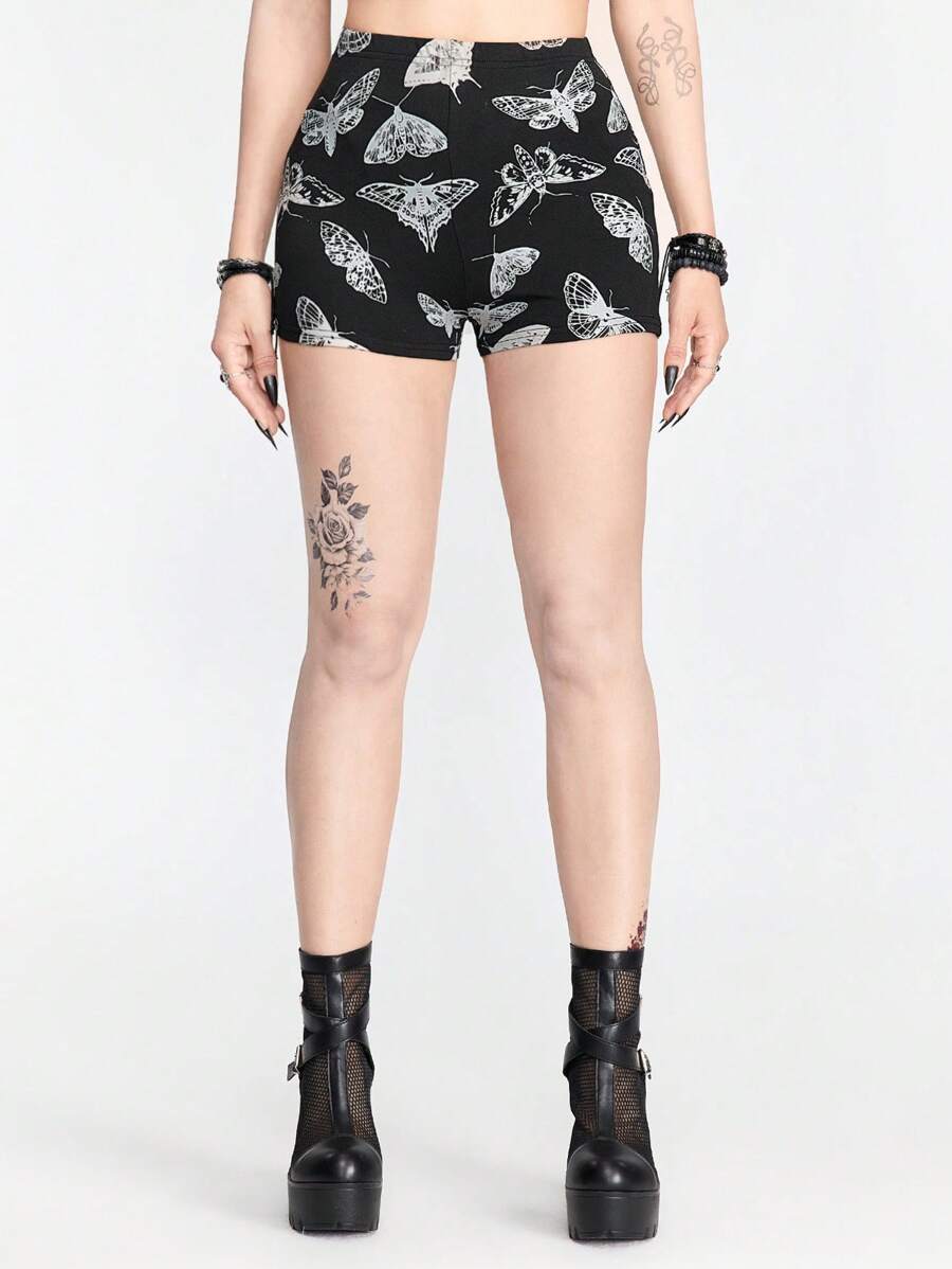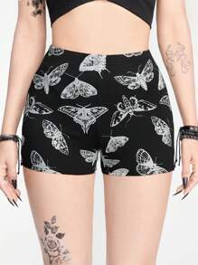 Summer Gothic Beach Holiday Bat Printed Women Tight Shorts