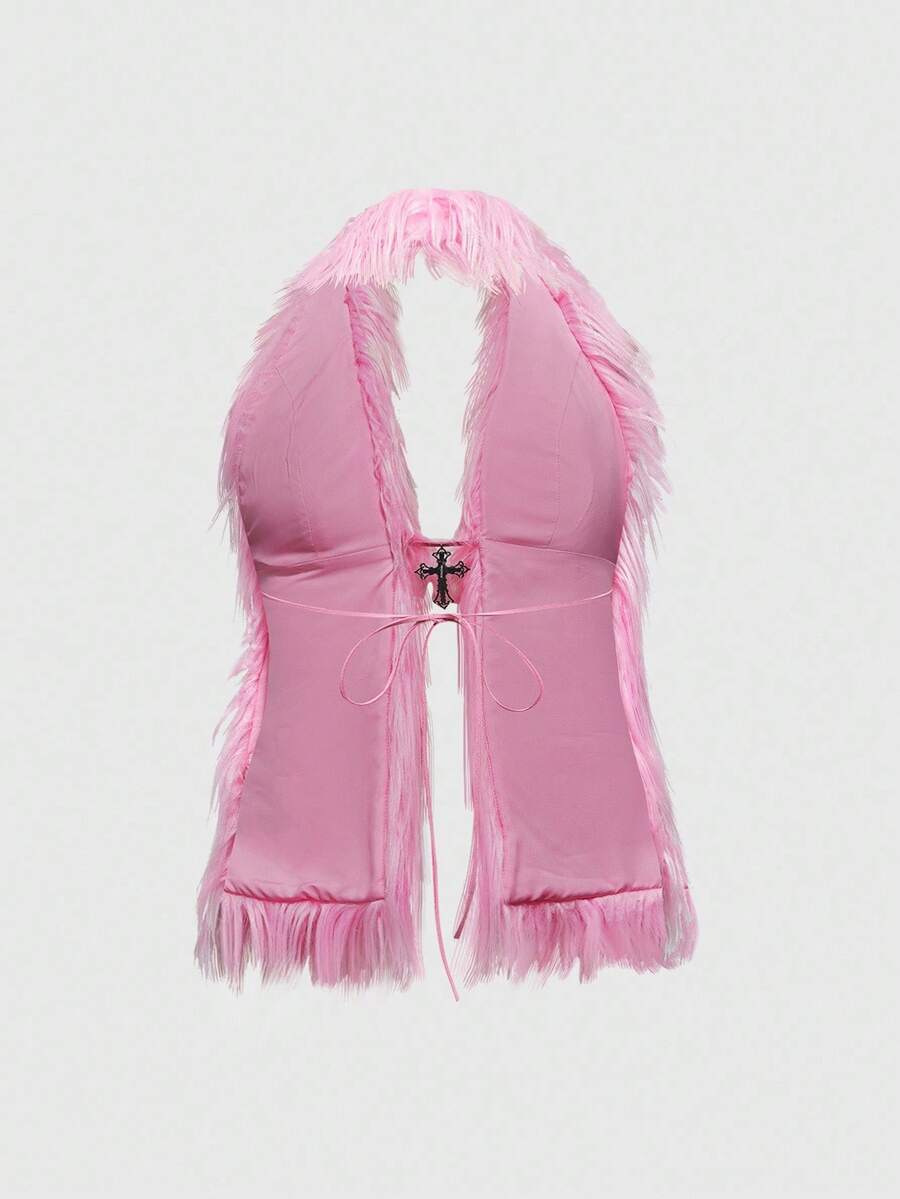 Grunge Punk Summer Music Festival Street Style Vacation Beach Holiday Y2K Vintage Halter Sexy Cross Pendant Women Tank Top
