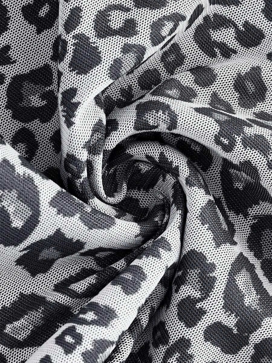 Grunge Punk Summer Sheer Leopard Print Strapless Top With Drawstring Ruched Sides
