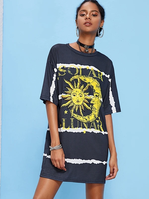 Sun Moon And Letter Graphic T-shirt Dress