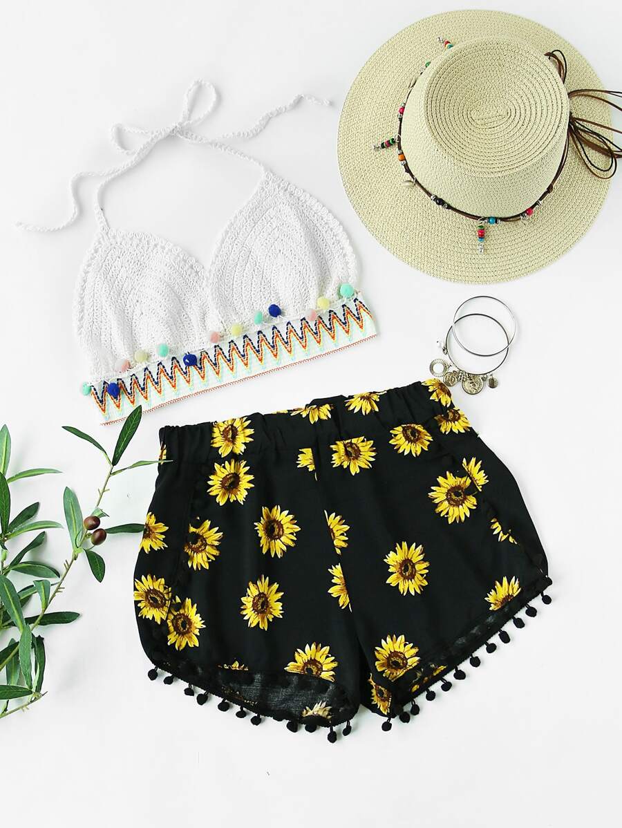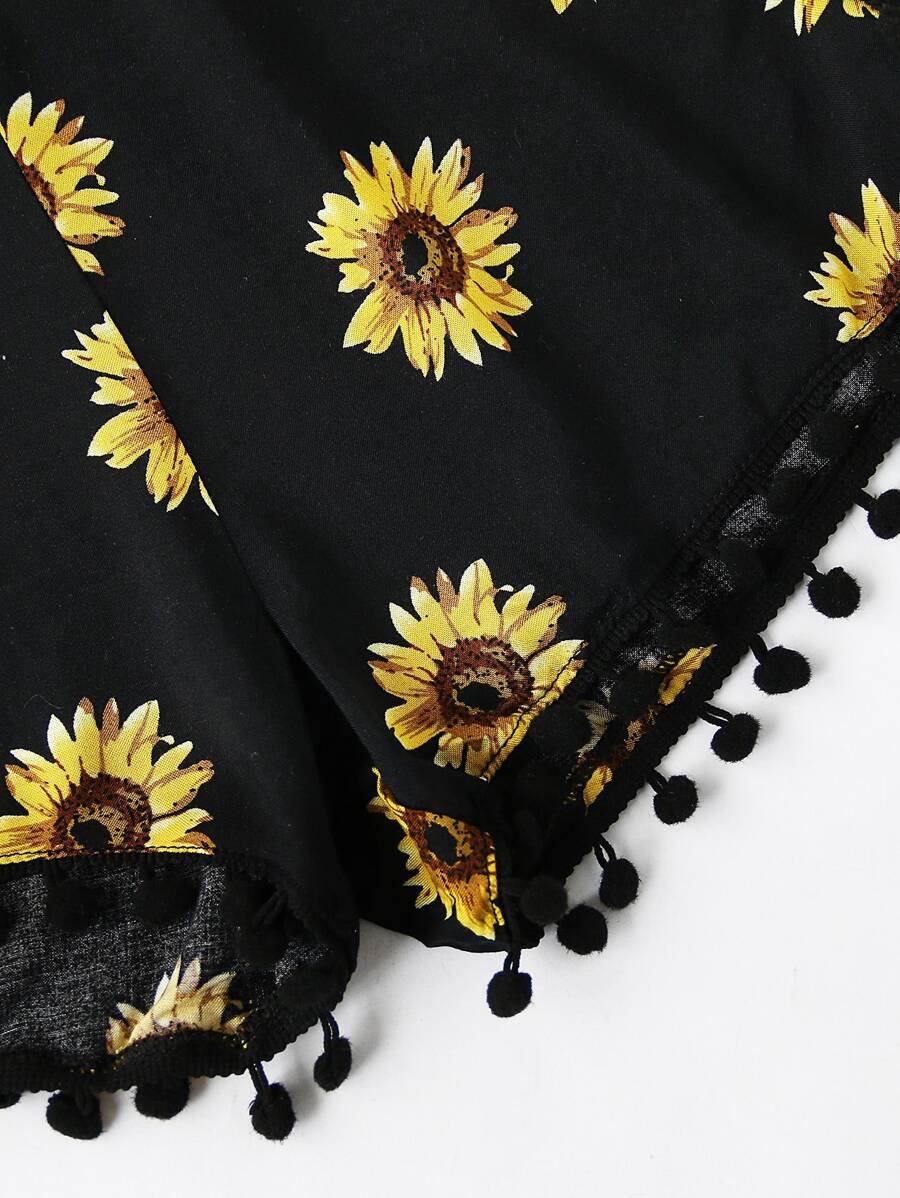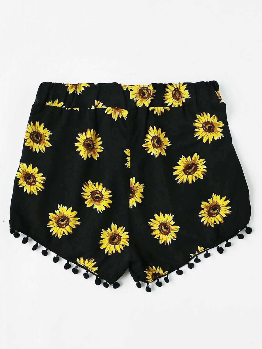 Sunflower Printed Pom Pom Hem Shorts