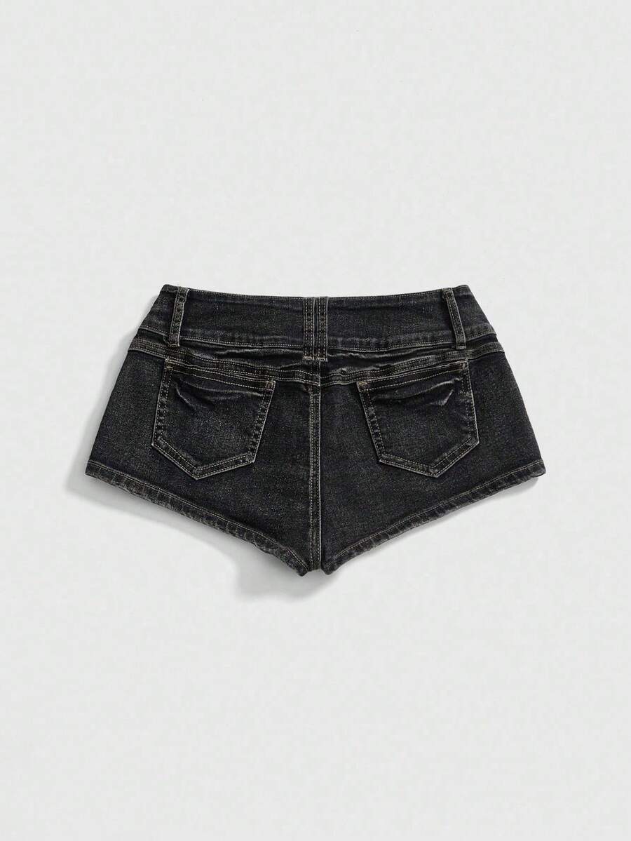 Super Low Waist Vintage Distressed Skull & Rivet Decorated Women's Denim Shorts