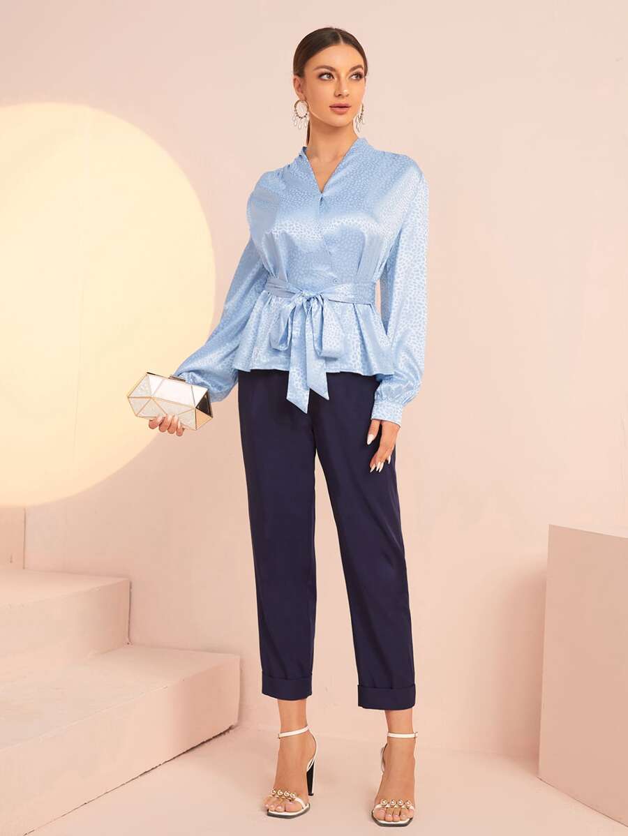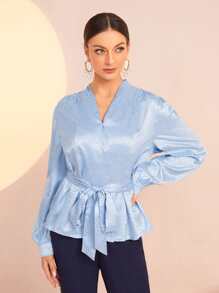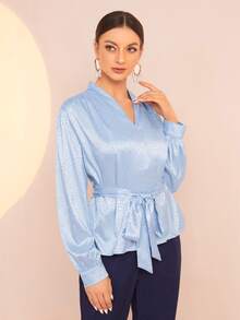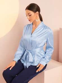 Surplice Neck Dalmatian Jacquard Blouse Without Belt
