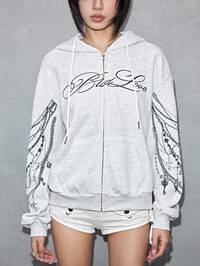 Grunge Punk Oversized Women Grunge Style Distressed Print Zip-Up Hoodie