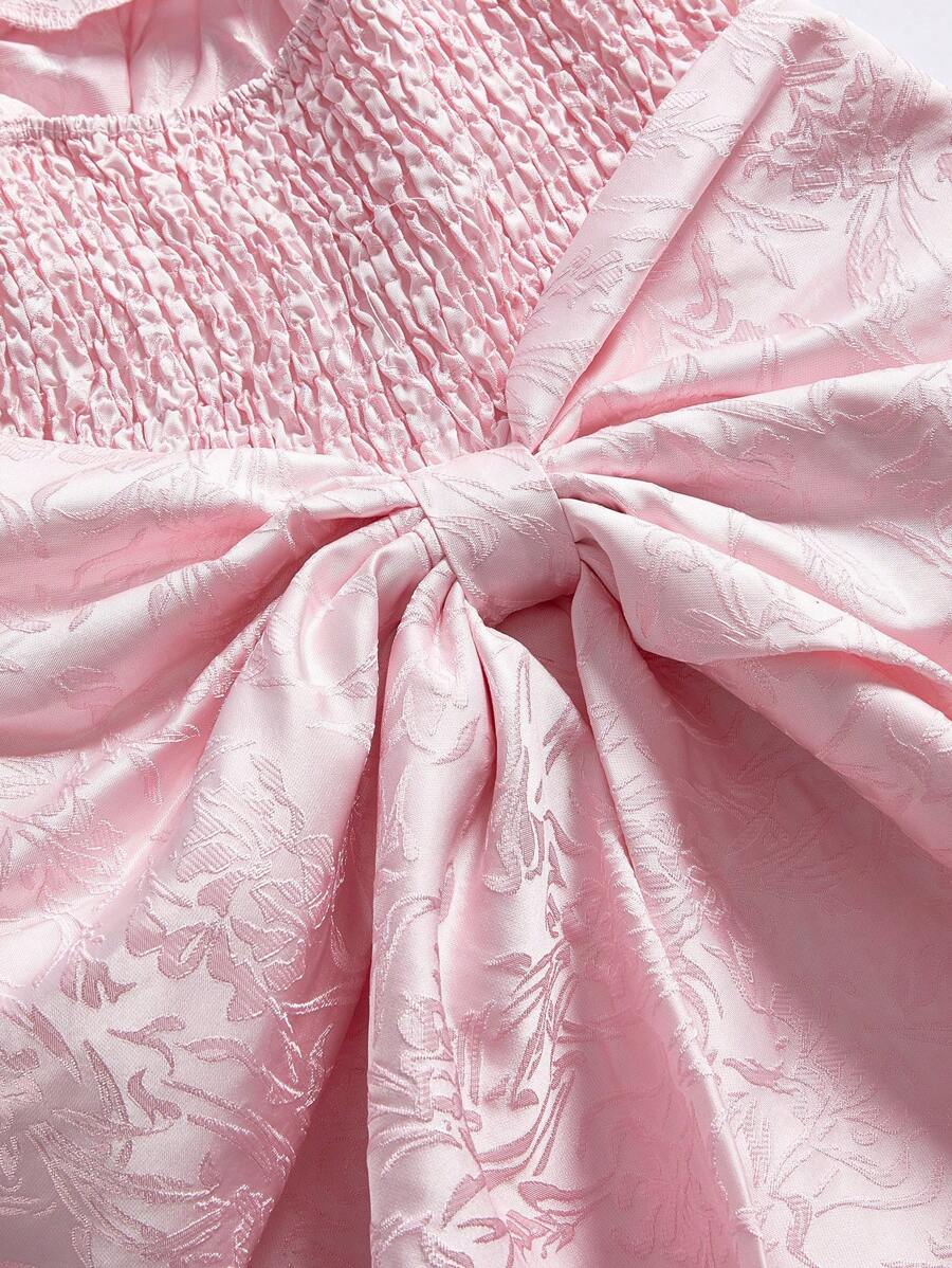 Kawaii Sweet Pink Jacquard Fabric Oversized Bow Decor Women Short Casual Dress For Tea Party Outfit
