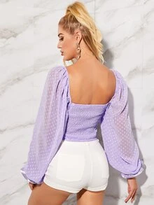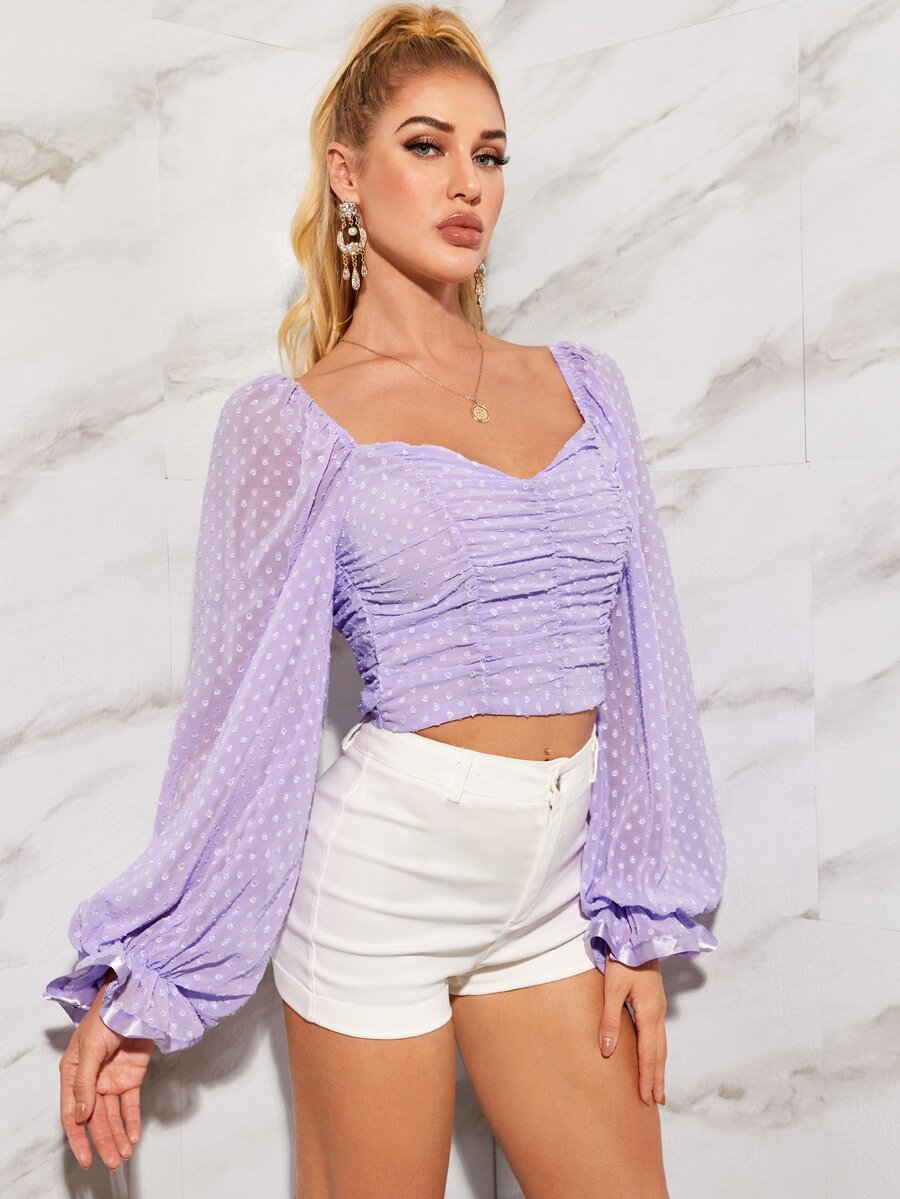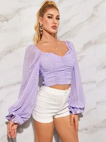Sweetheart Neck Ruched Swiss Dot Chiffon Crop Top