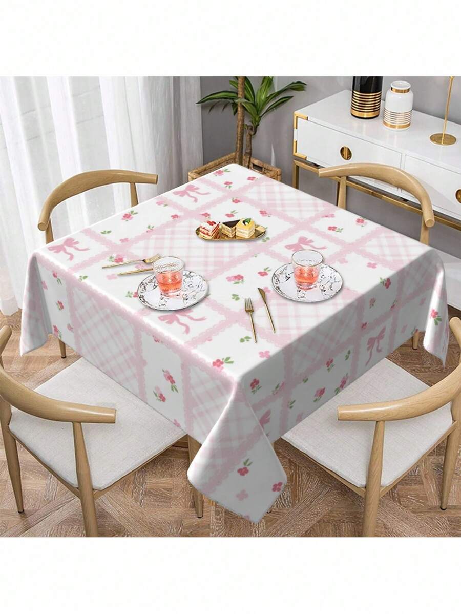 Sweetness 1pc Light Pink Tablecloth With Bow Decoration. Suitable For Dining Rooms, Kitchens, Outdoor Picnics,Party, In A Fashionable Style, It Makes Your Home Warm And Cozy,,Perfect For Home Decor And Rooms, Universal Fit For Home