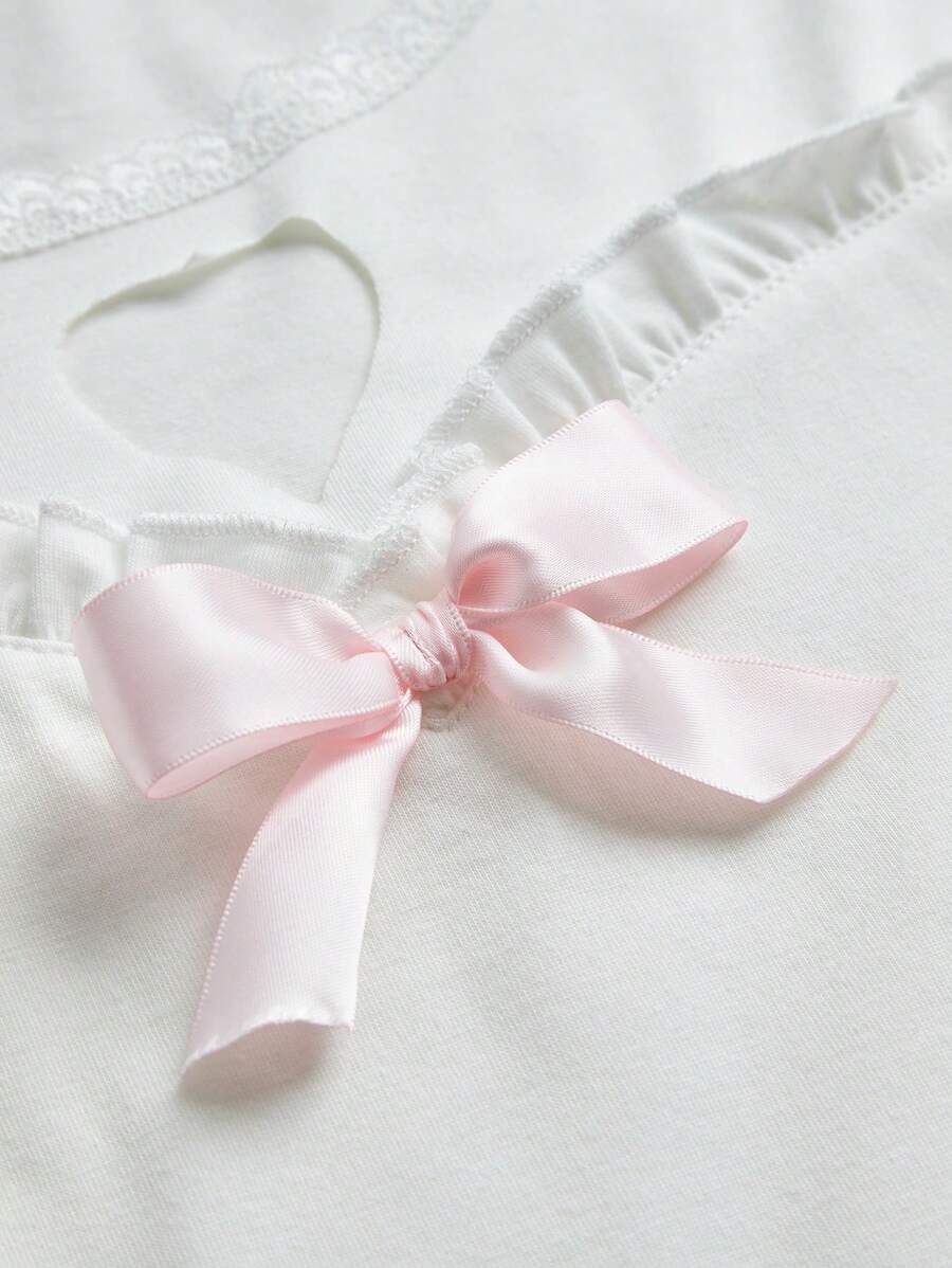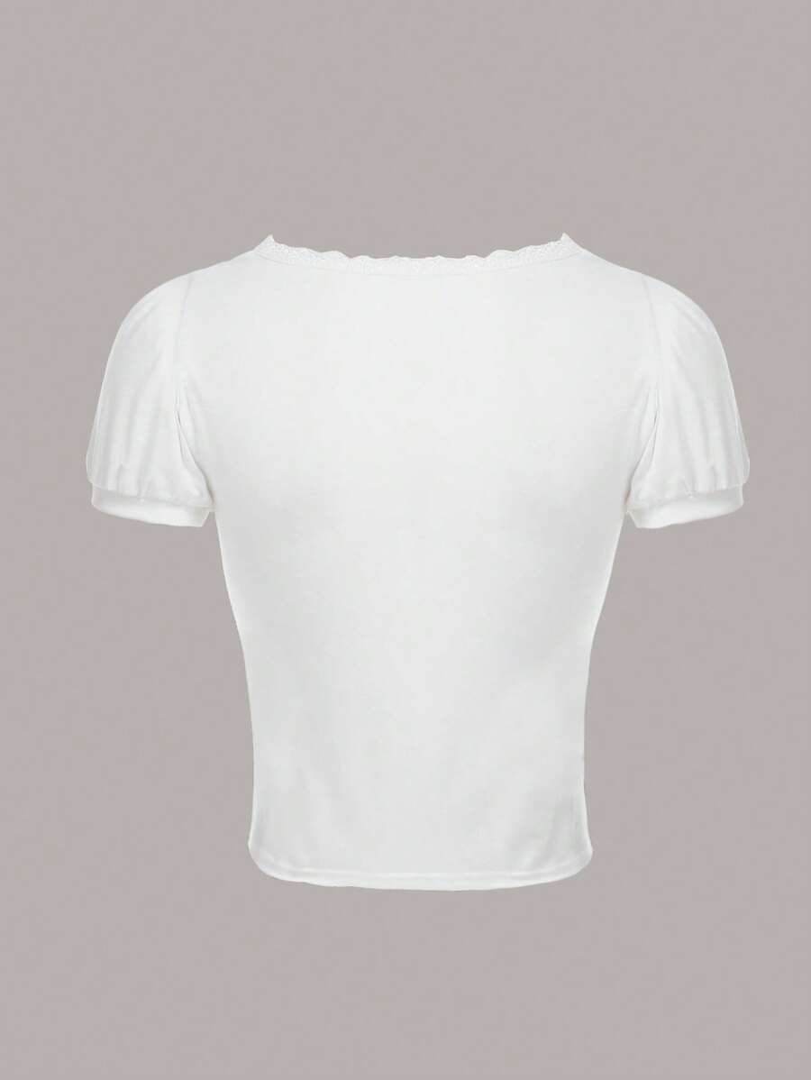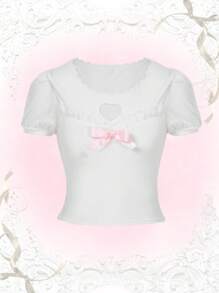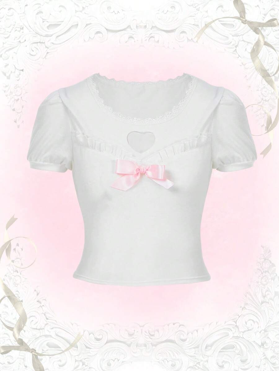 Sweetness Bow Front Frill Trim Puff Sleeve Tee