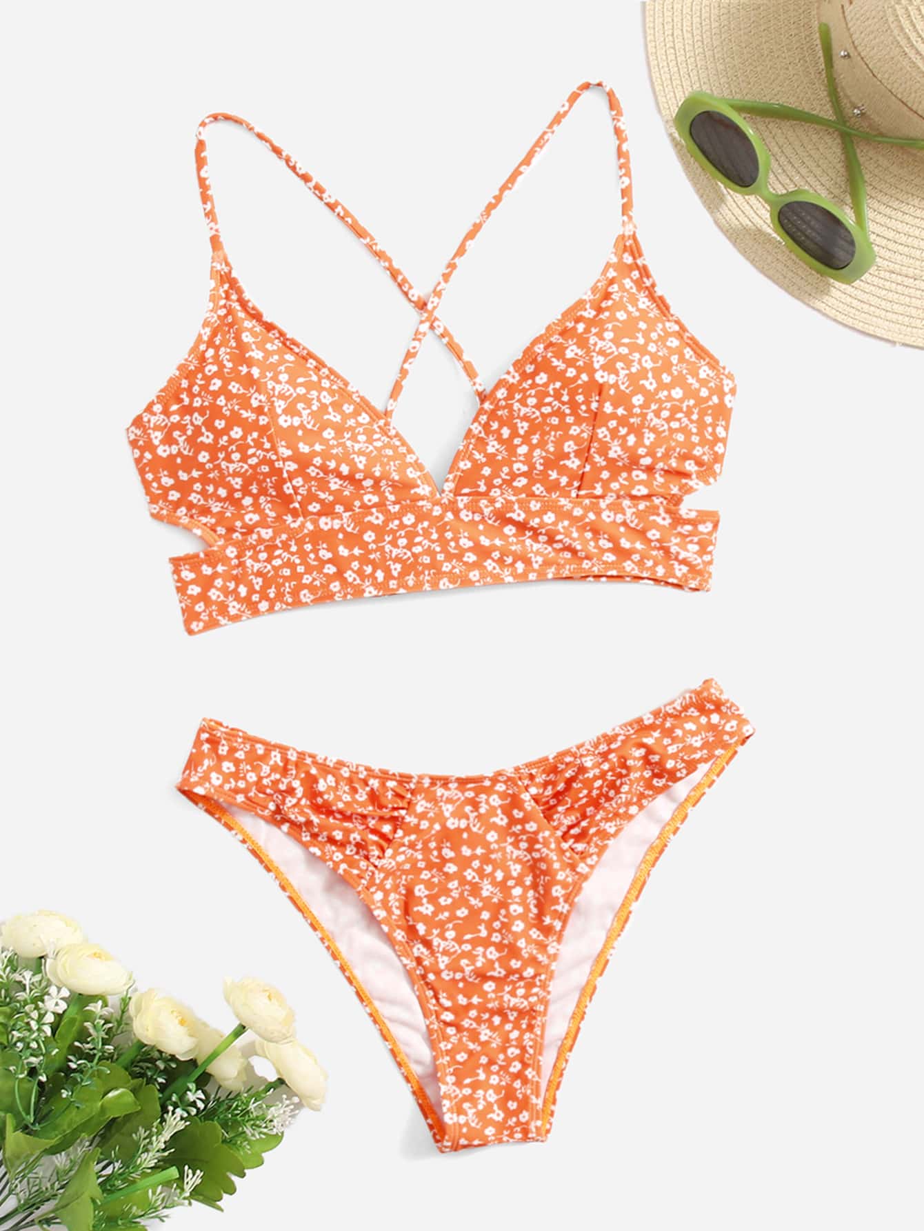 Sweetness Ditsy Floral Criss Cross Cut Out Bikini