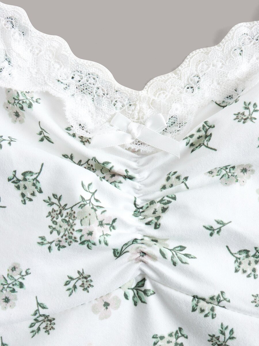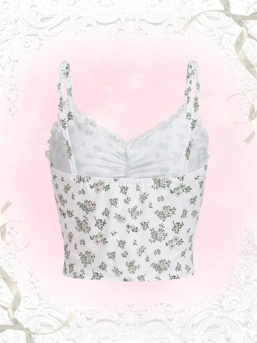 Ditsy Floral Lace Trim Cami Top