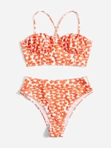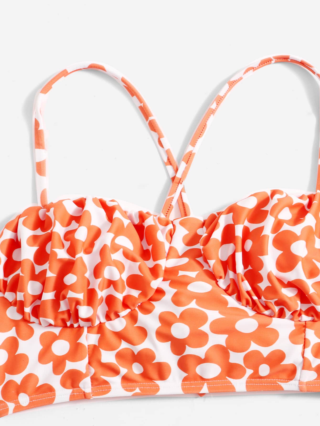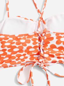 Sweetness Floral Print Ruched Bust Lace Up Bikini