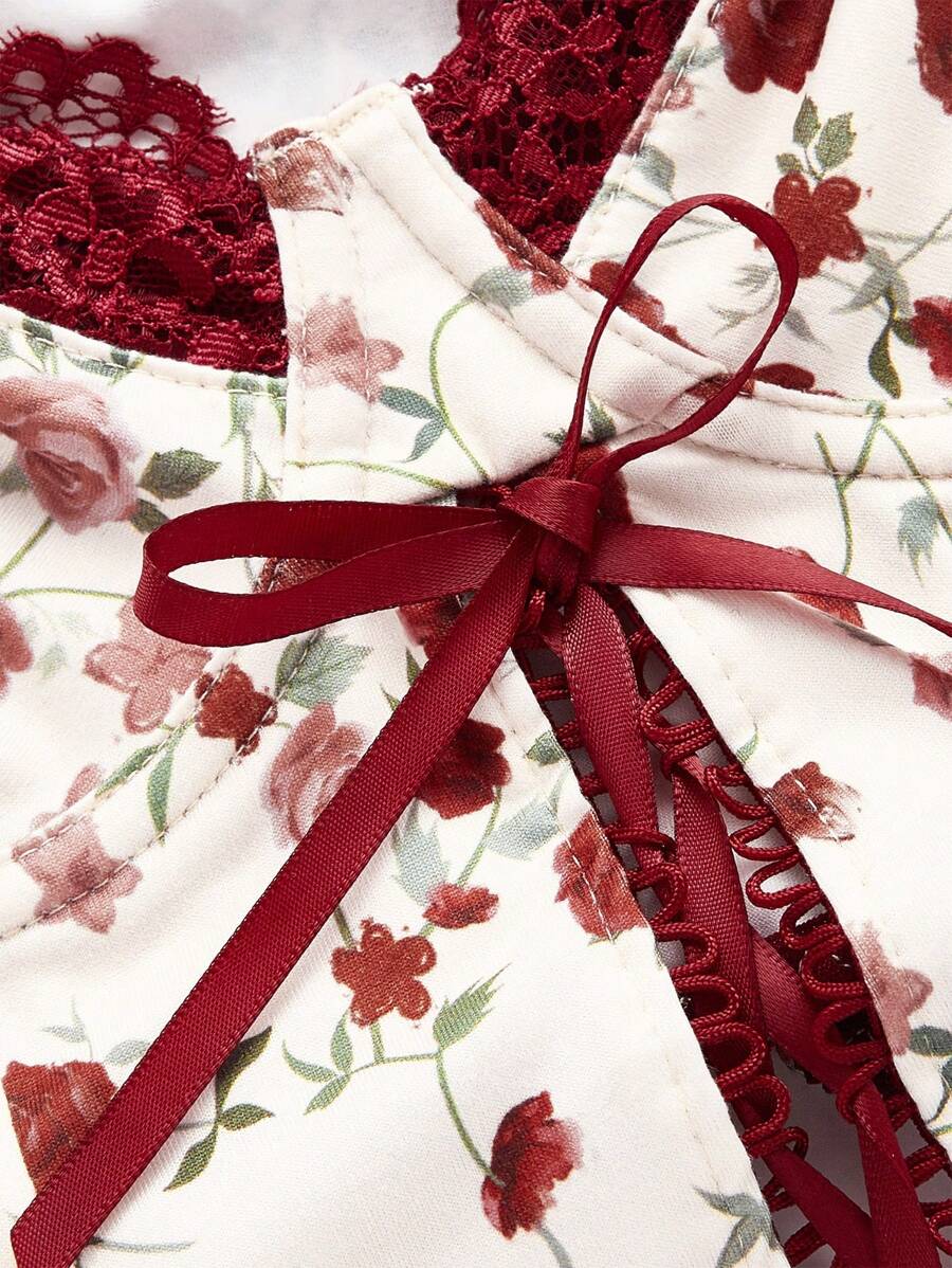 Sweetness Floral Printed Lace Spliced Cross Strapped Camisole Top